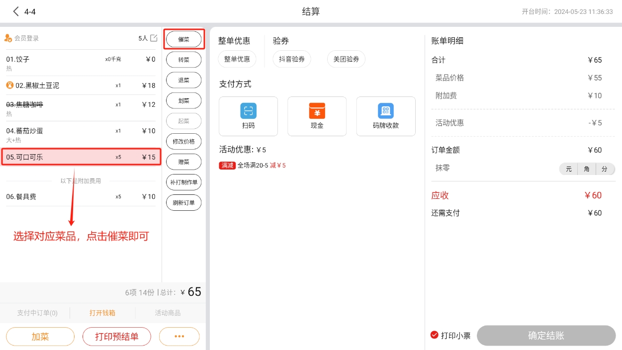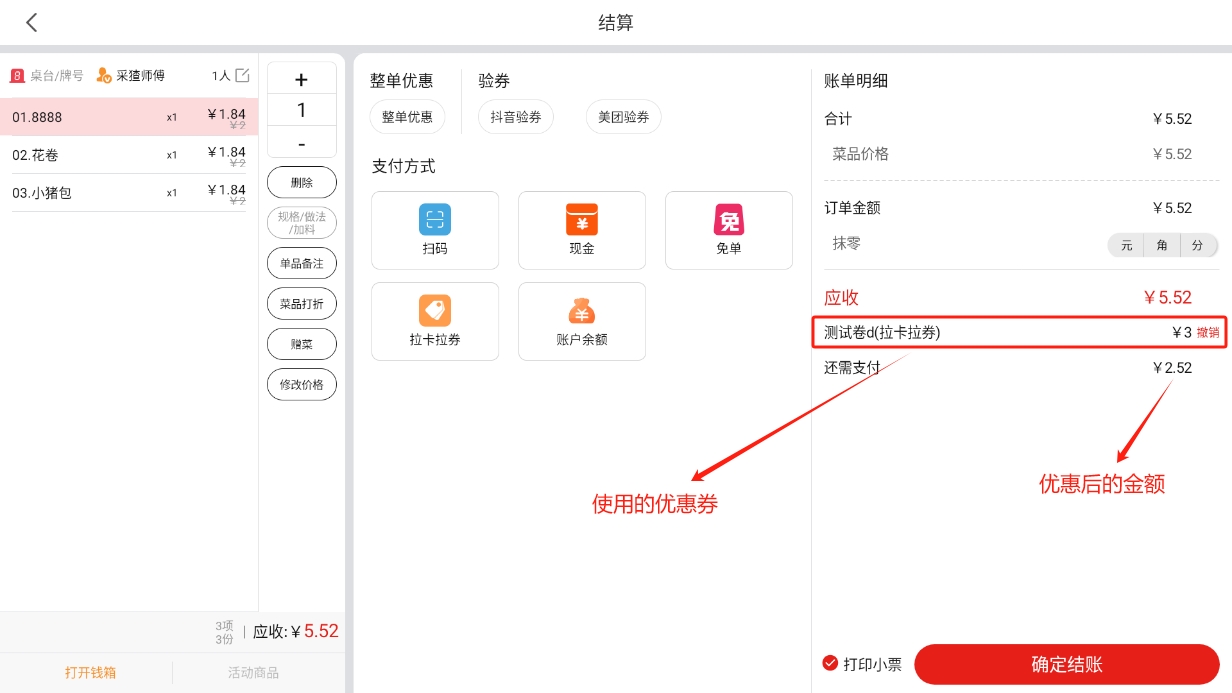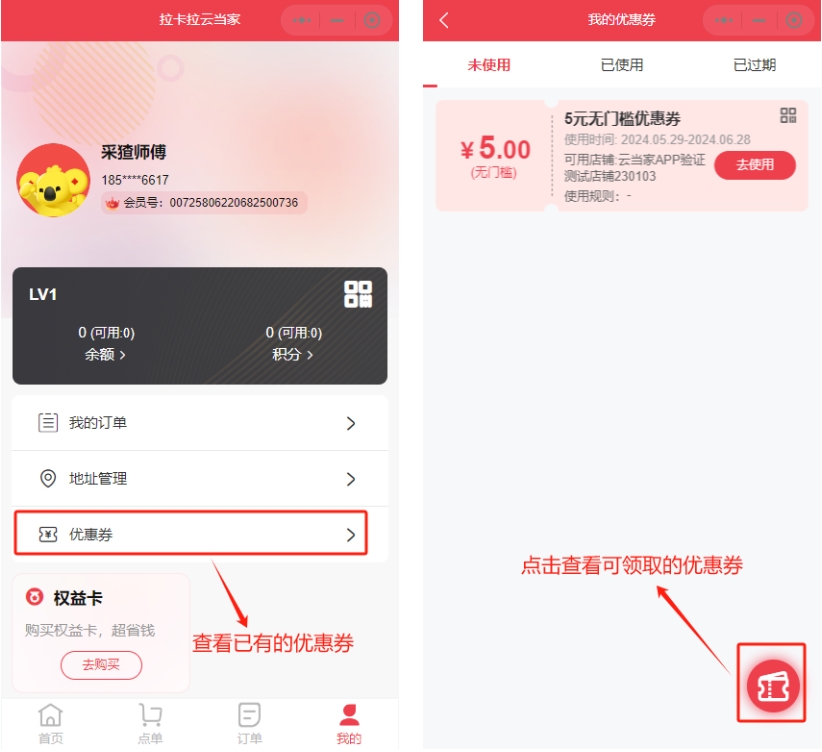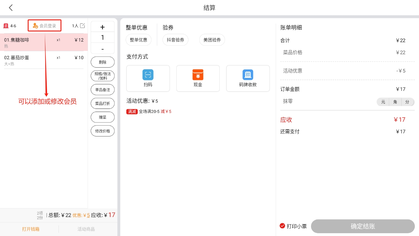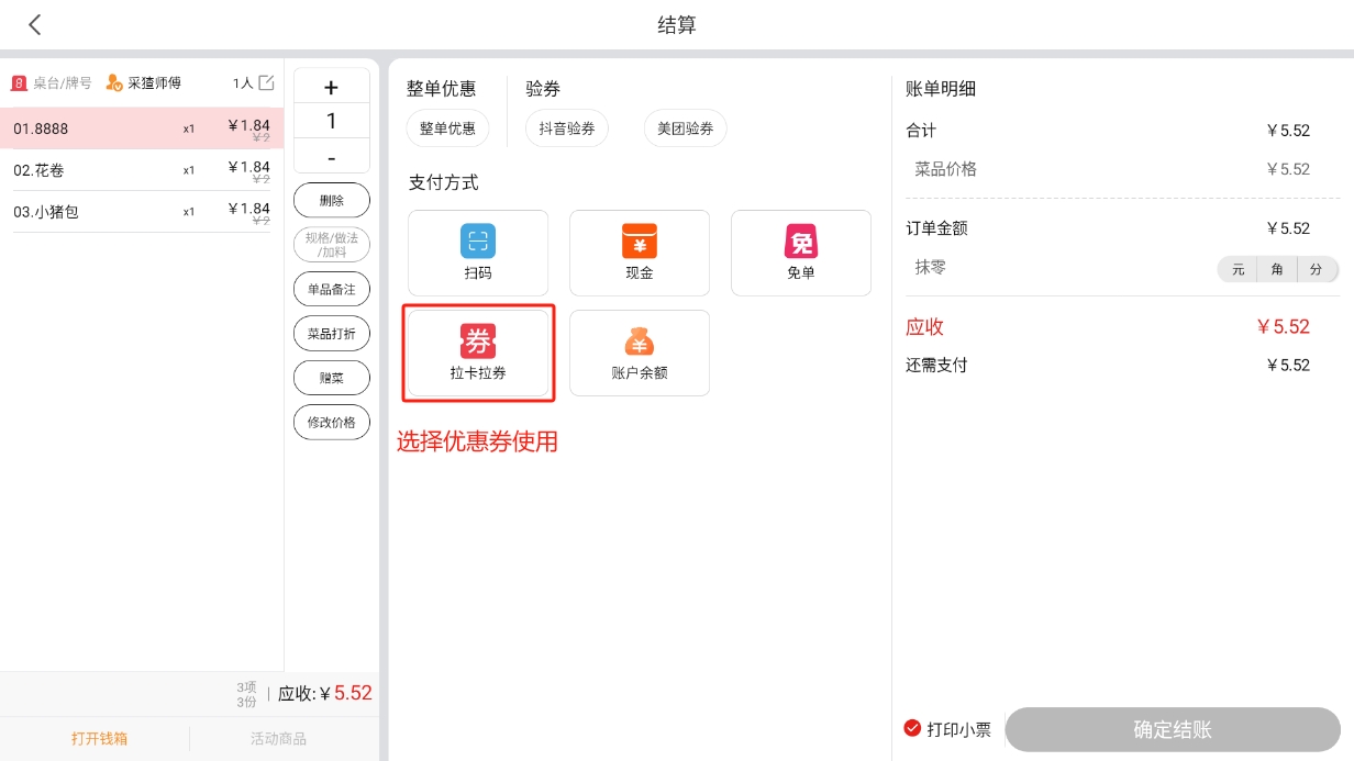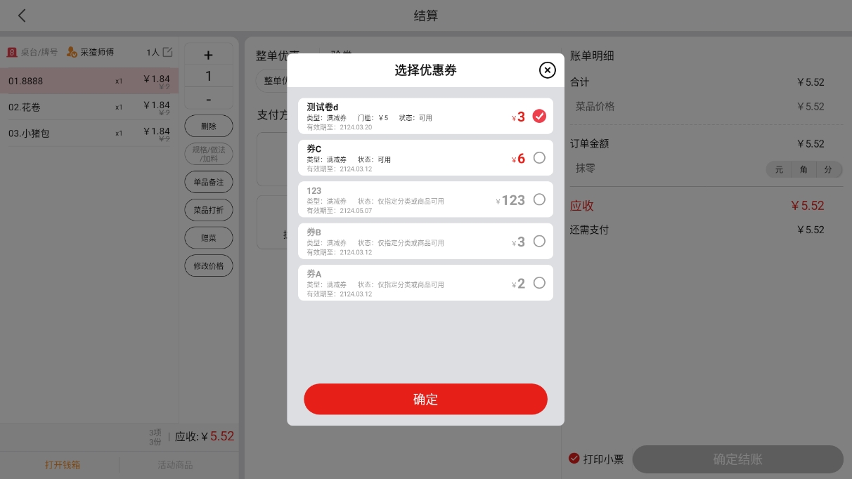 会员在【收银机端】进行结账时,可以使用优惠券;