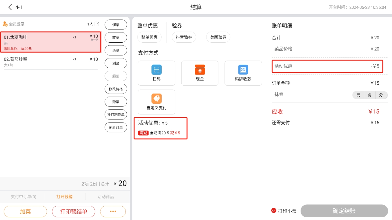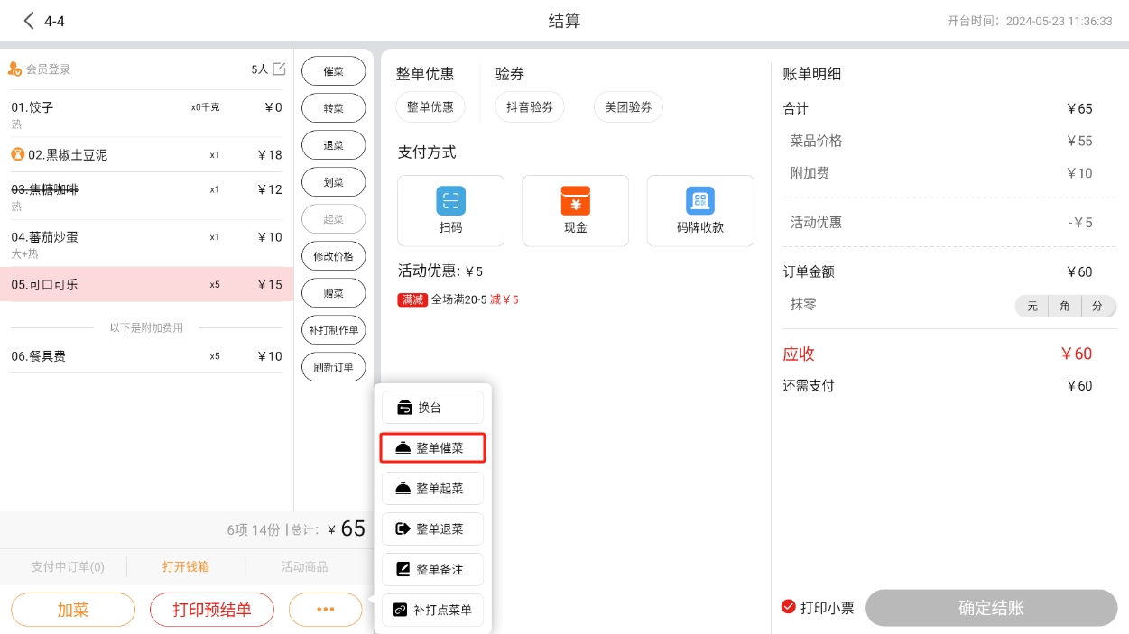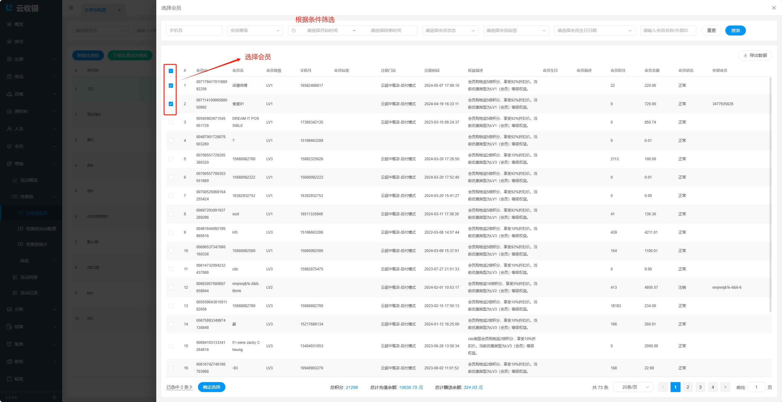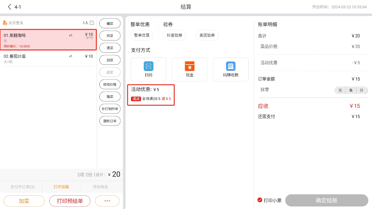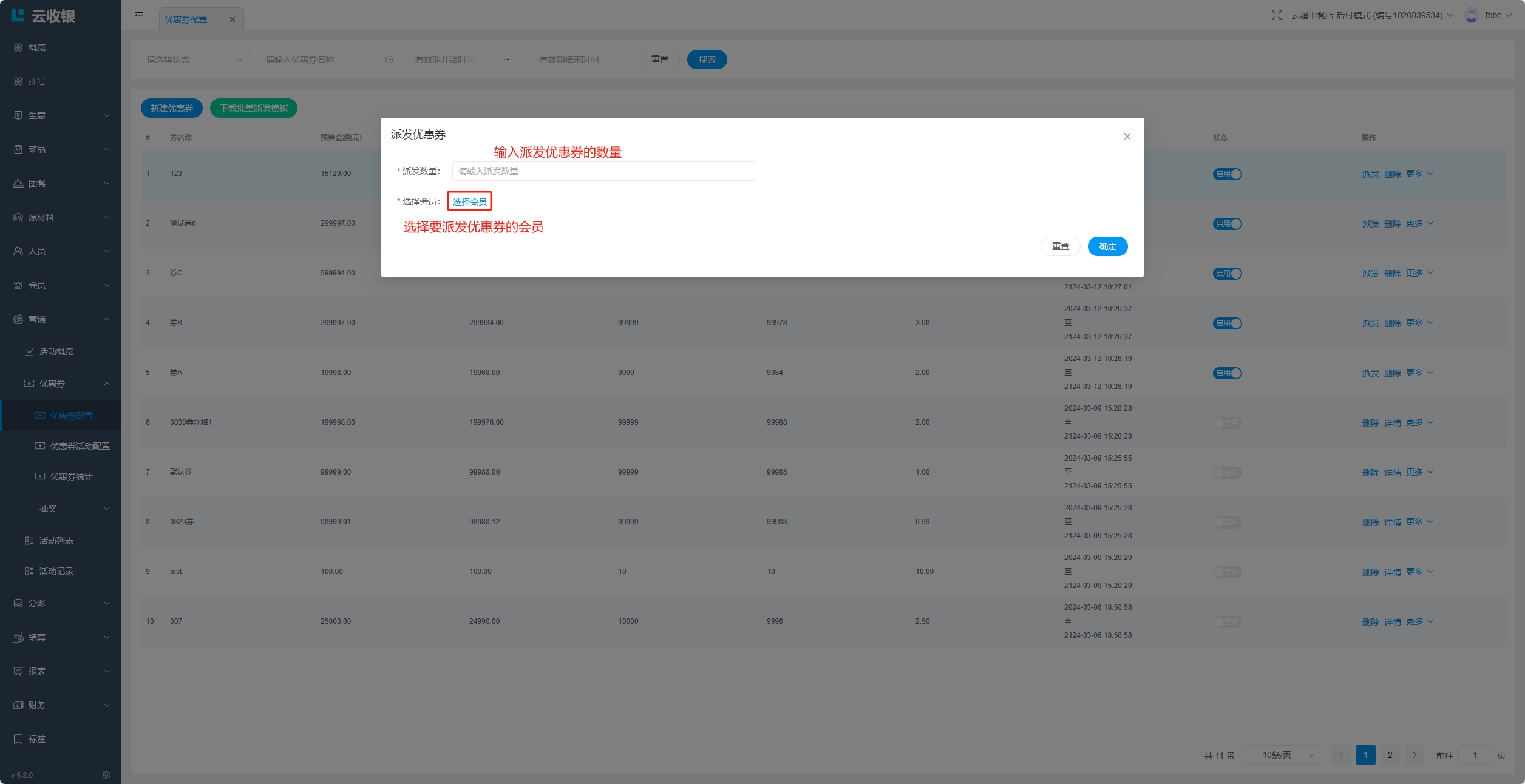 会员在【收银机端】进行结账时,可以使用优惠券;