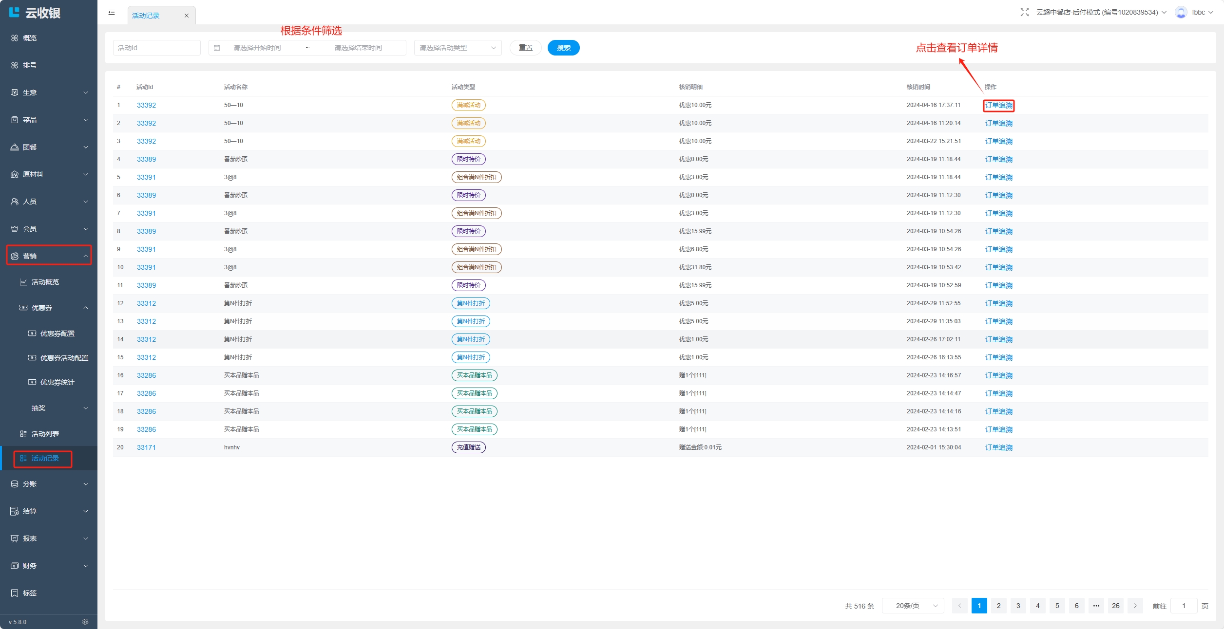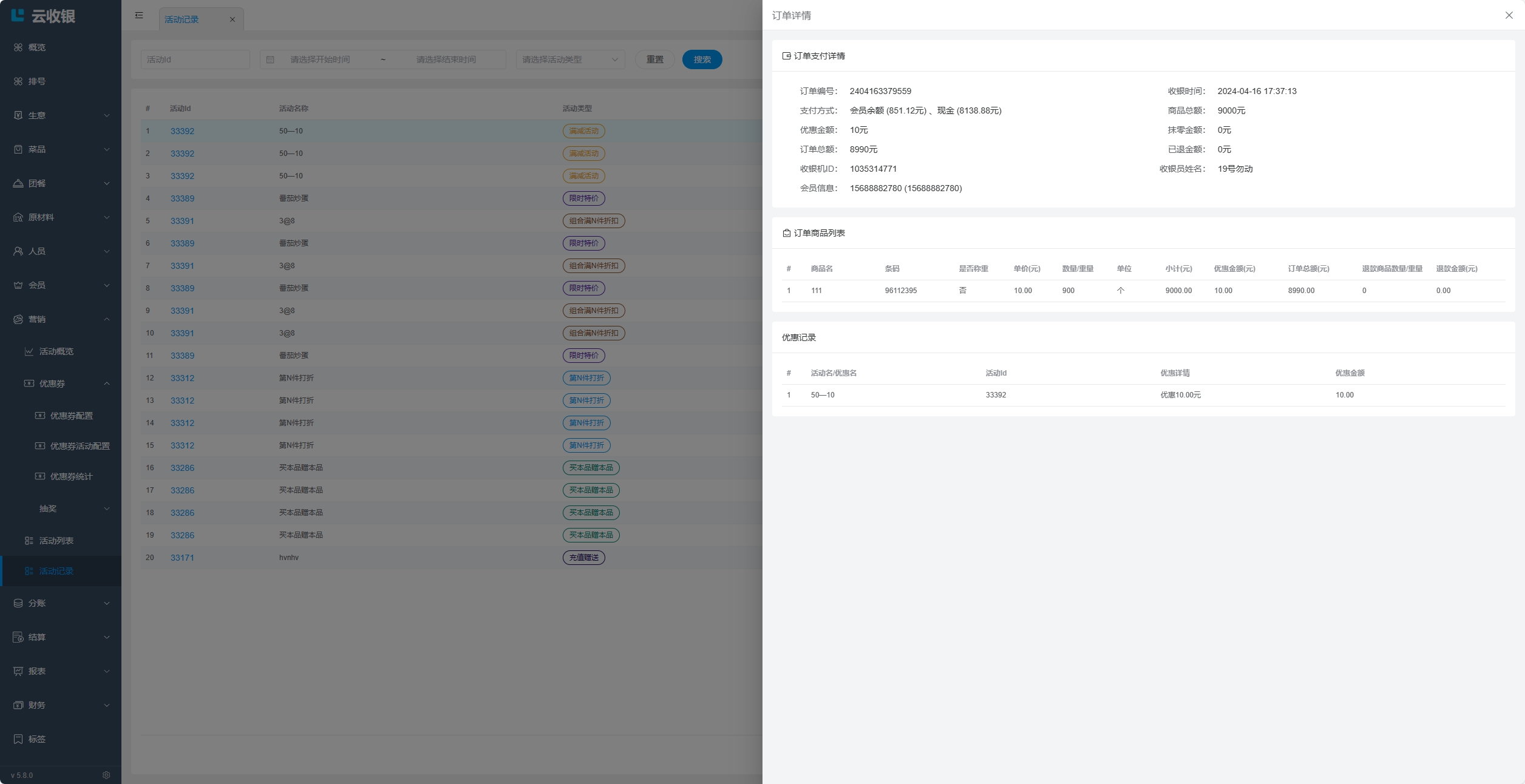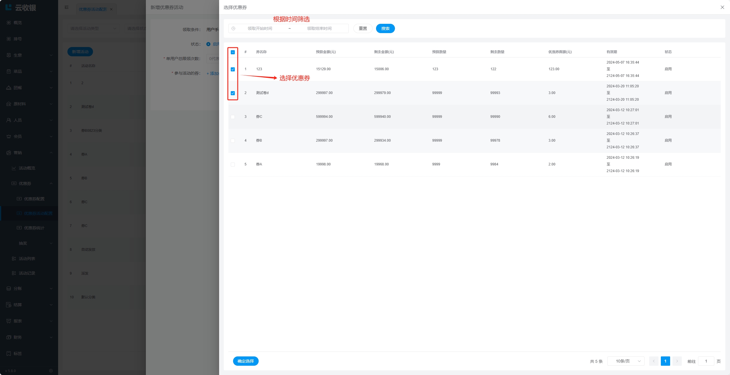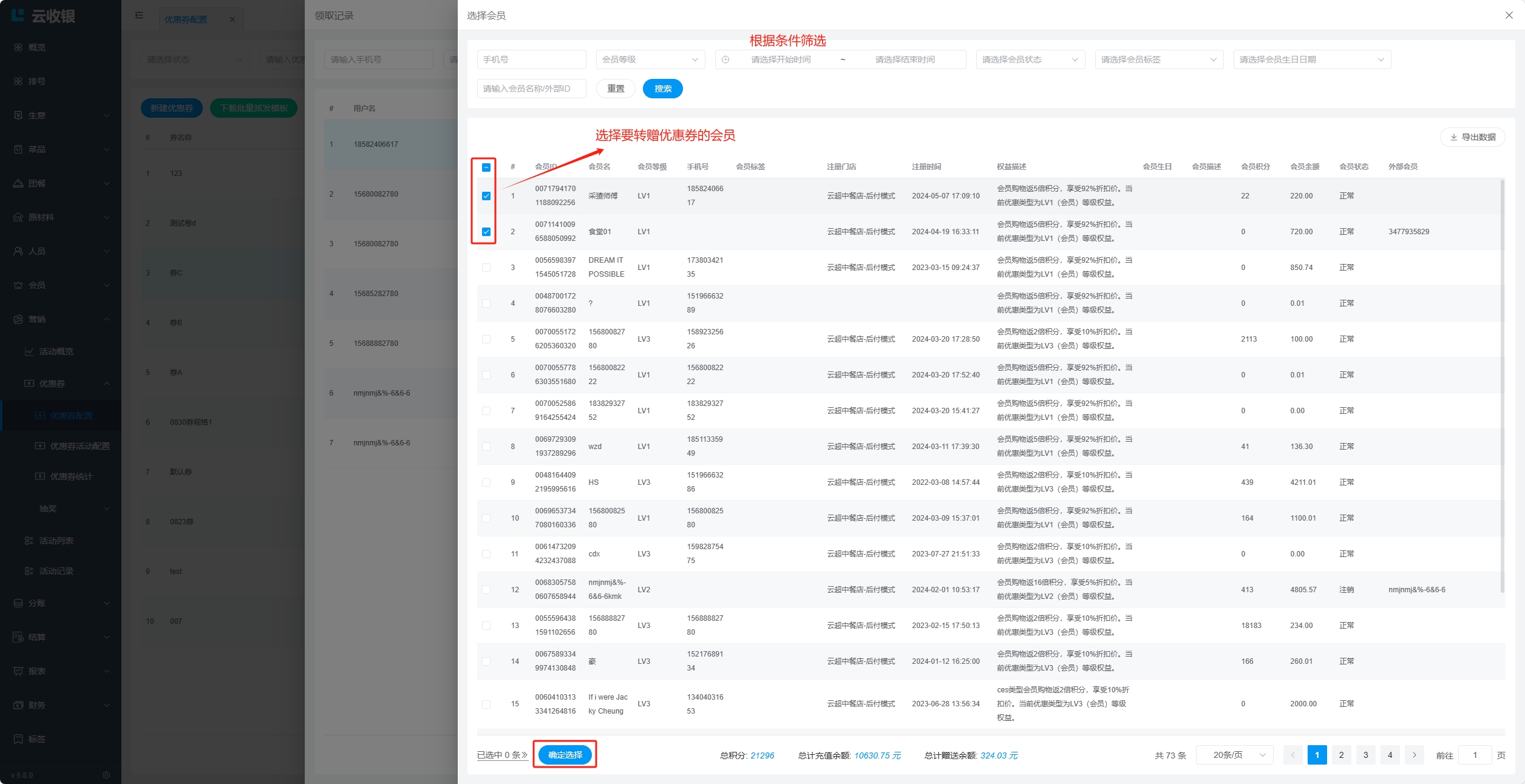 会员在【收银机端】进行结账时,可以使用优惠券;