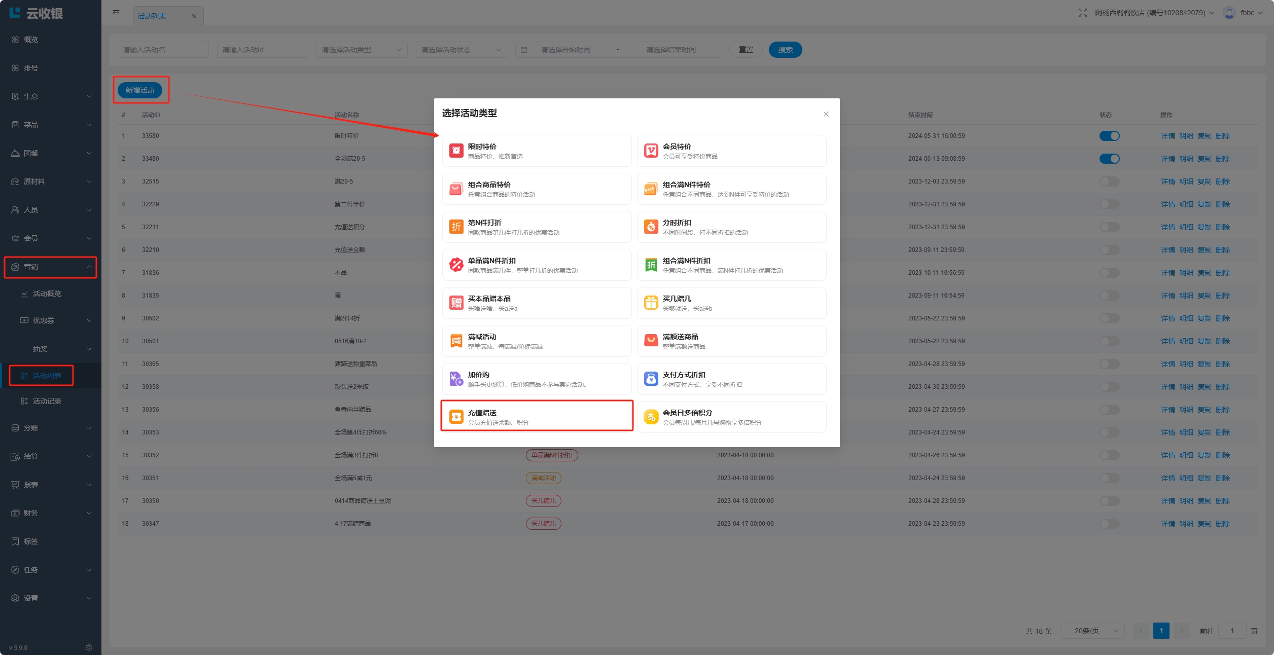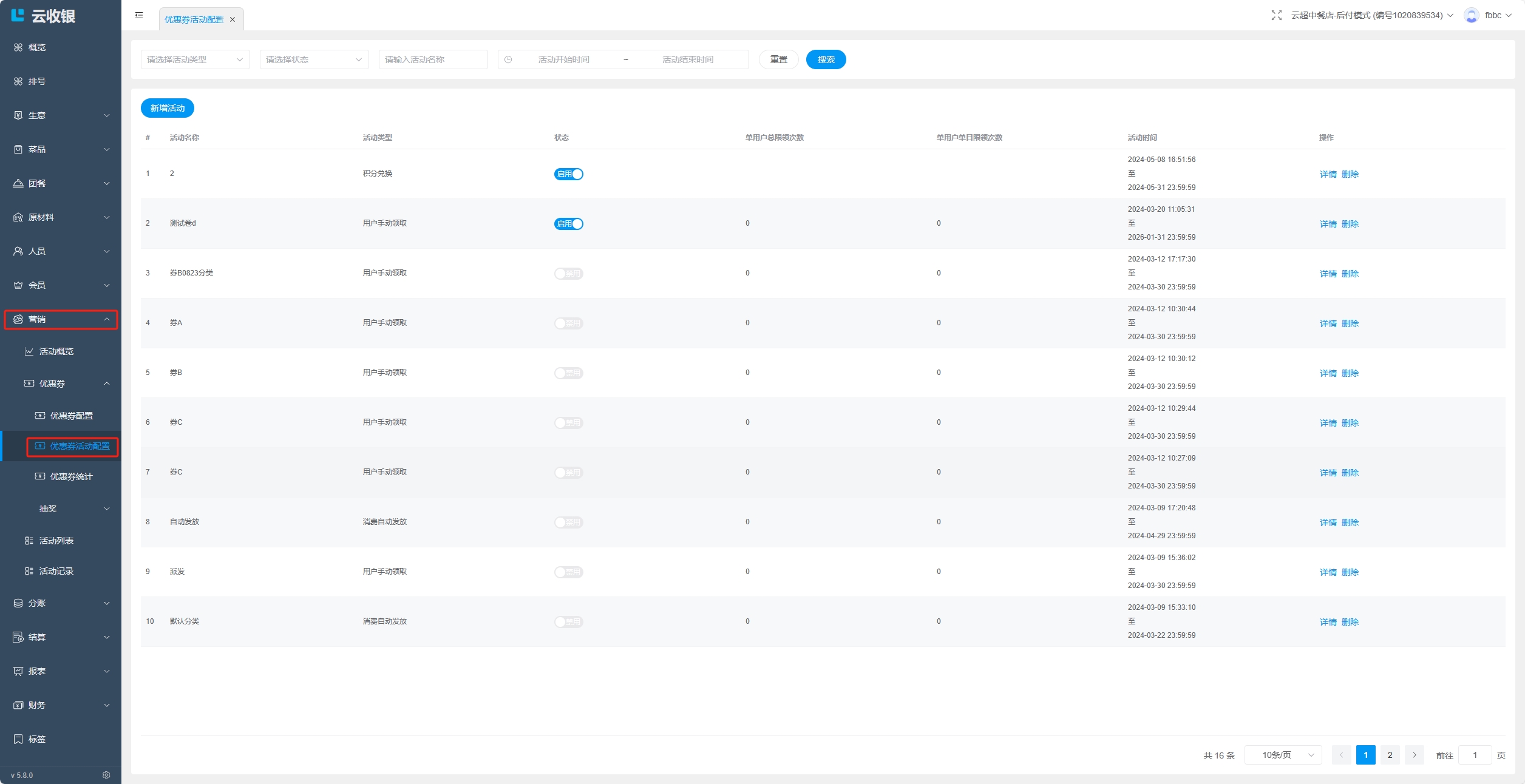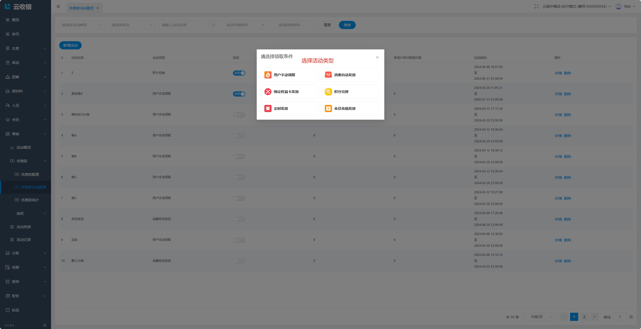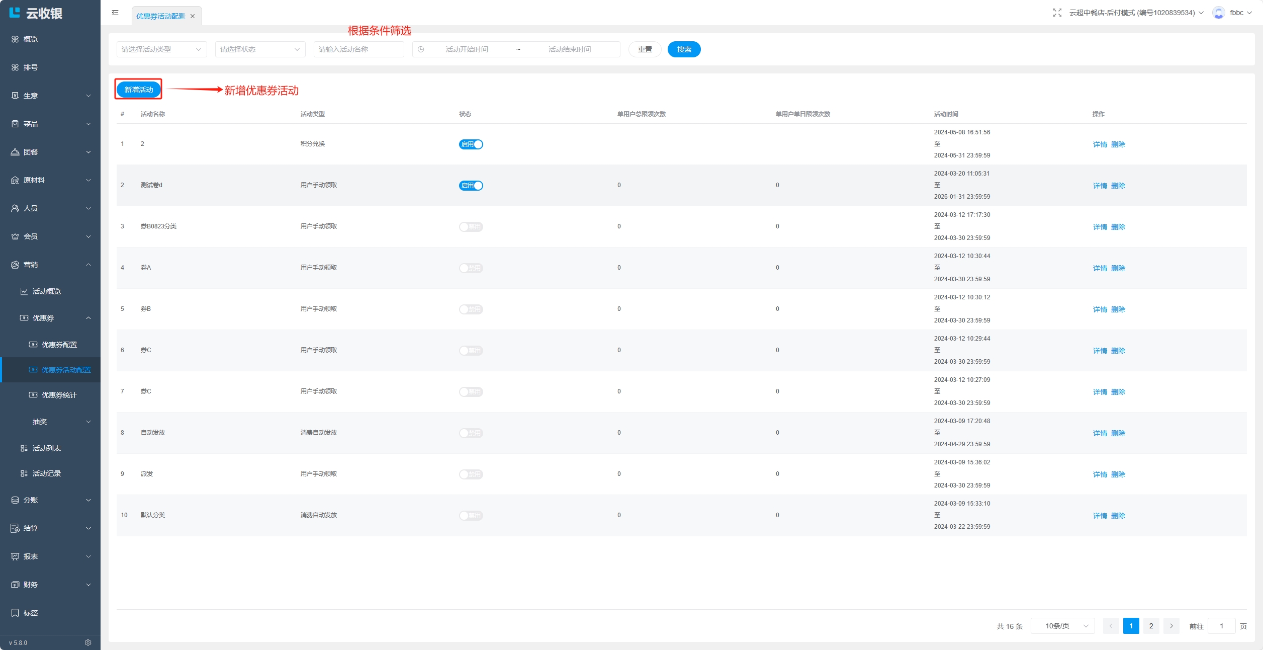 删除优惠券活动: