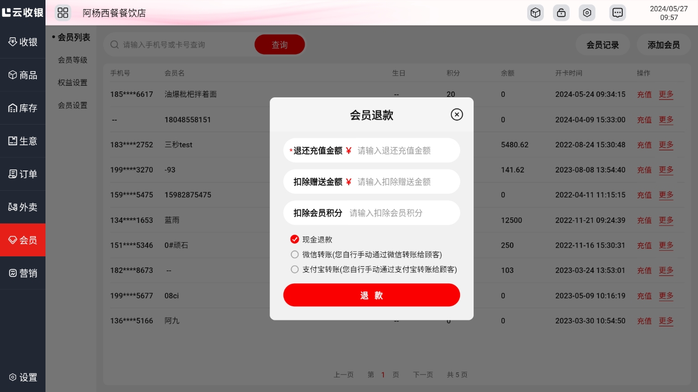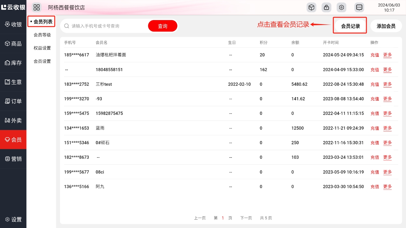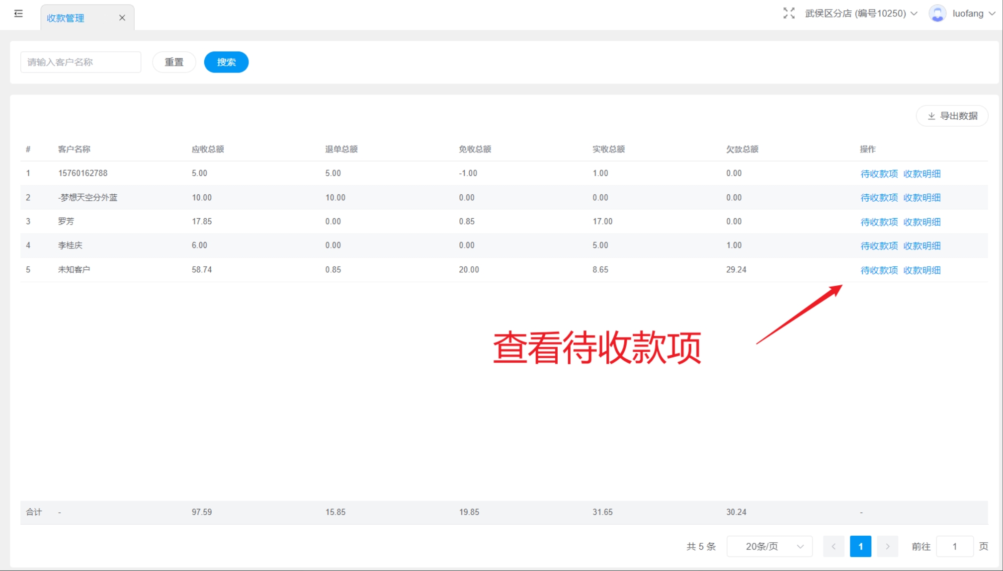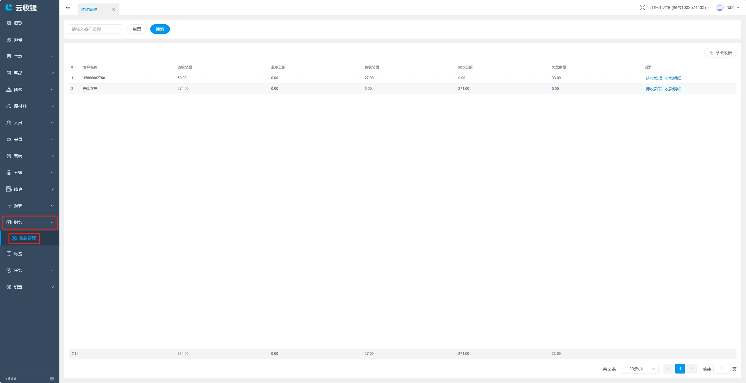 收款管理记录会员消费未支付的赊账款项,并用于商家进行收款清账操作;