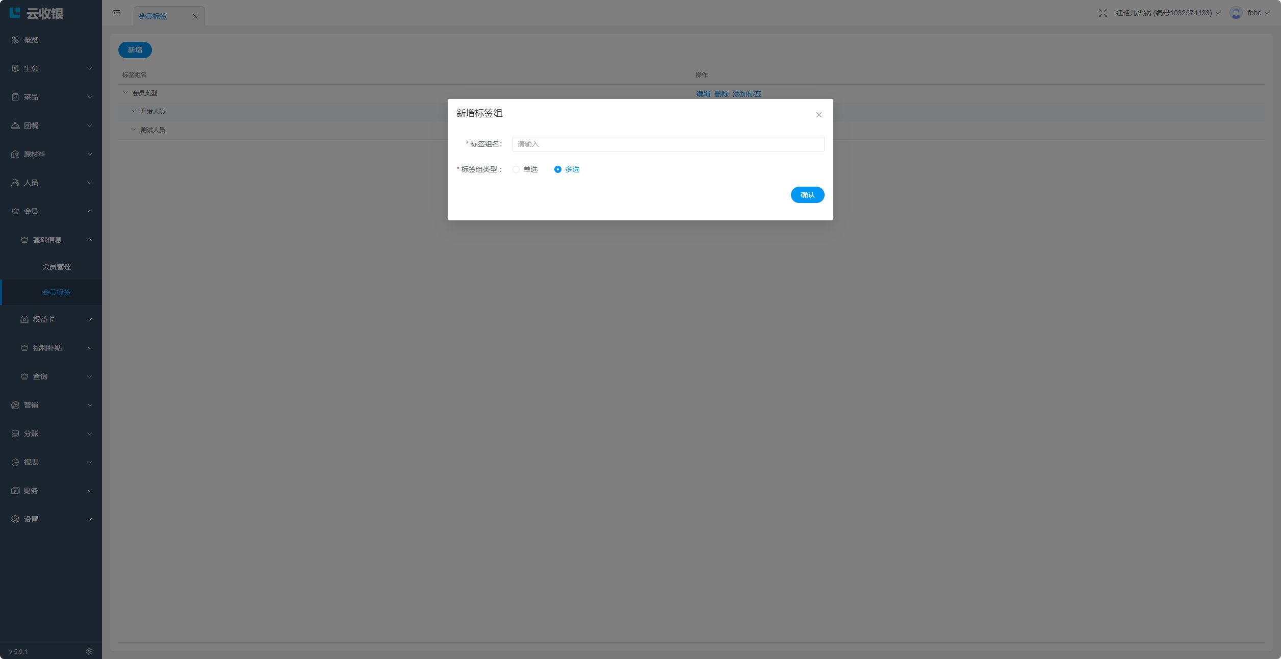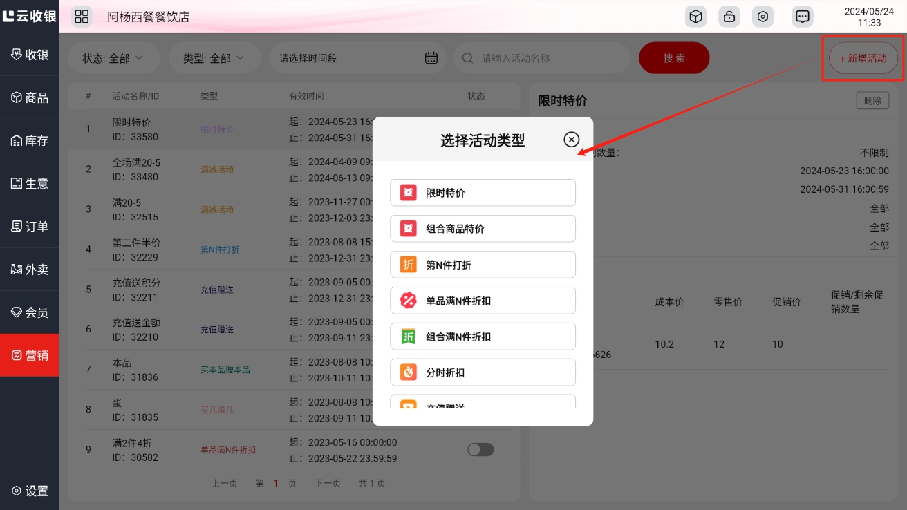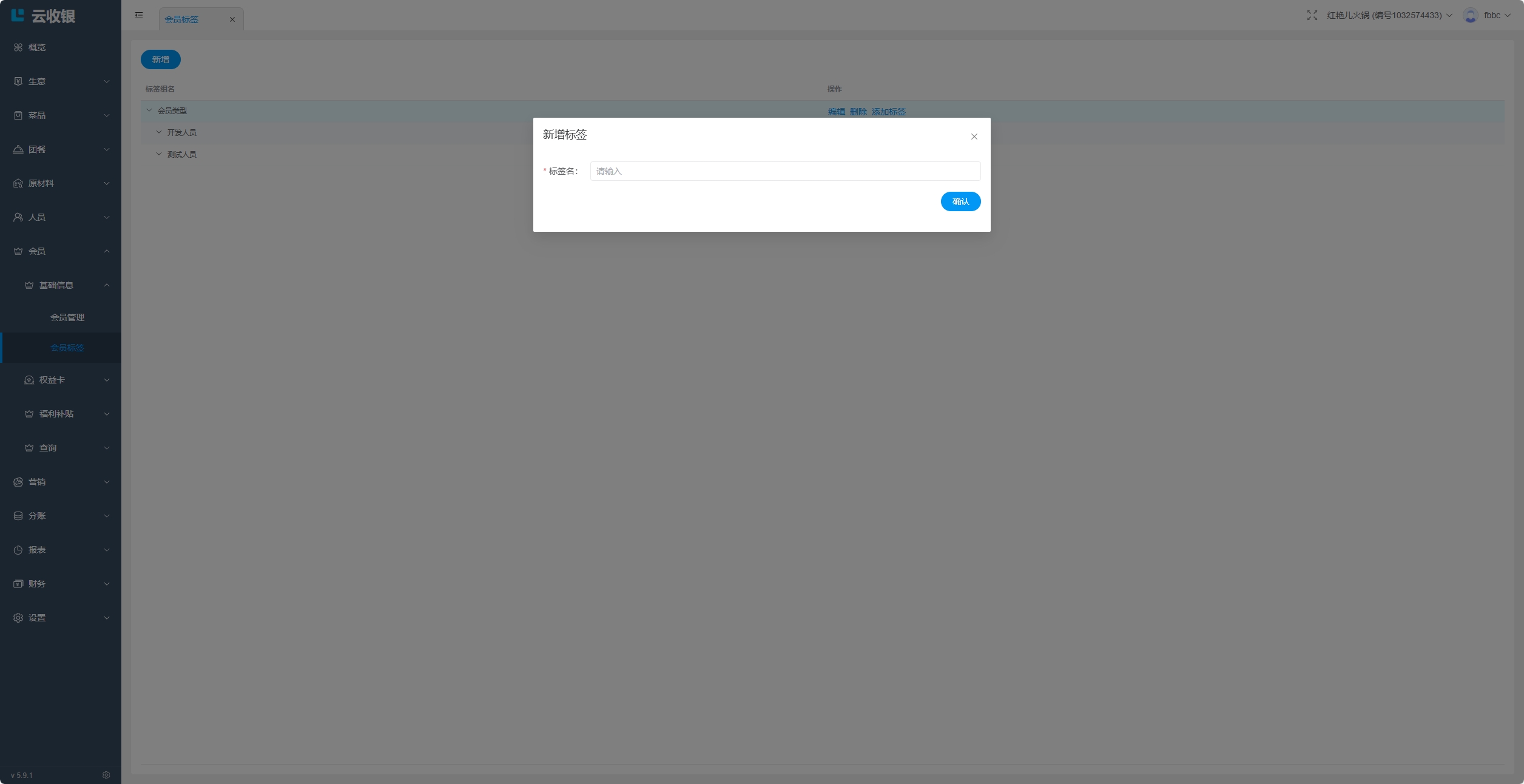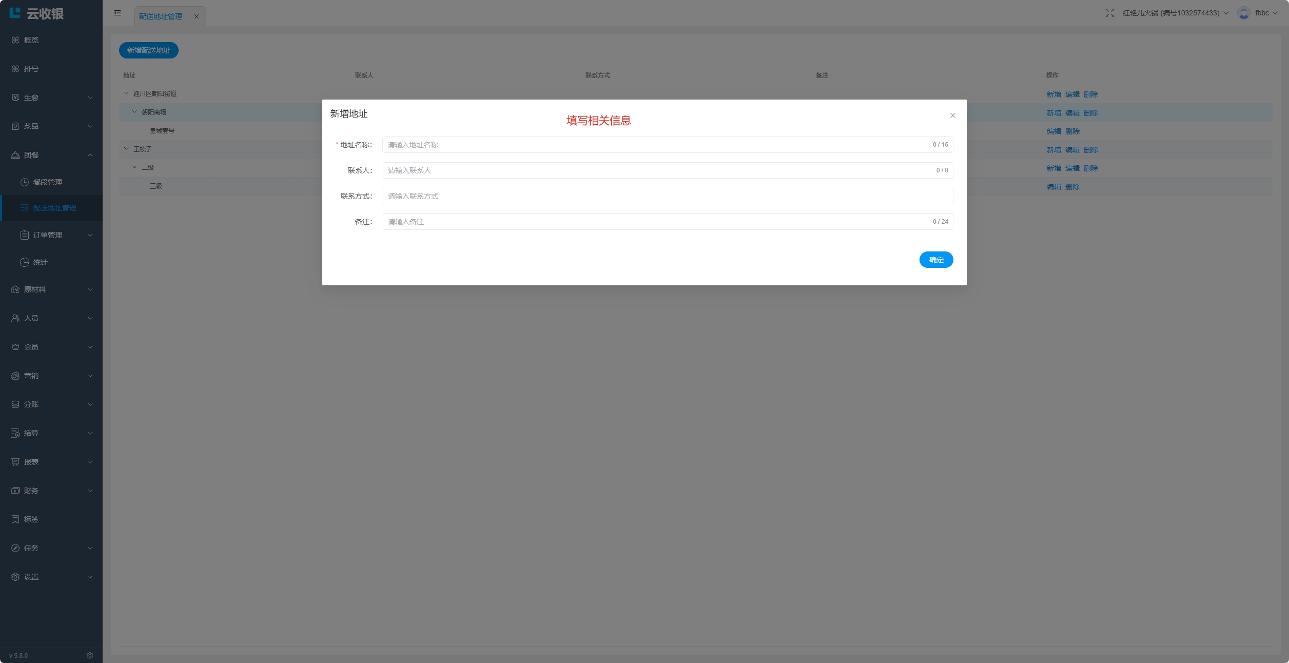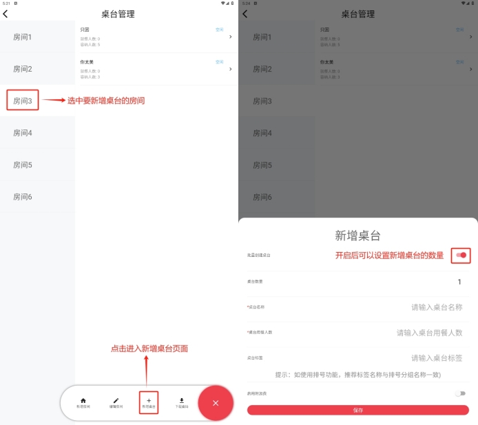 3.5.4 新增桌台