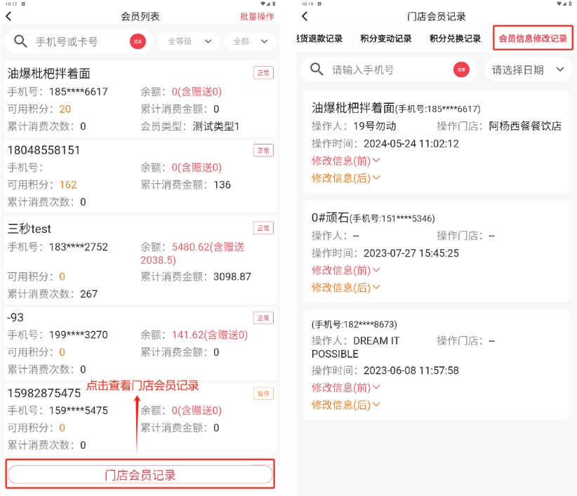 - 离职:将员工从当前门店删除;