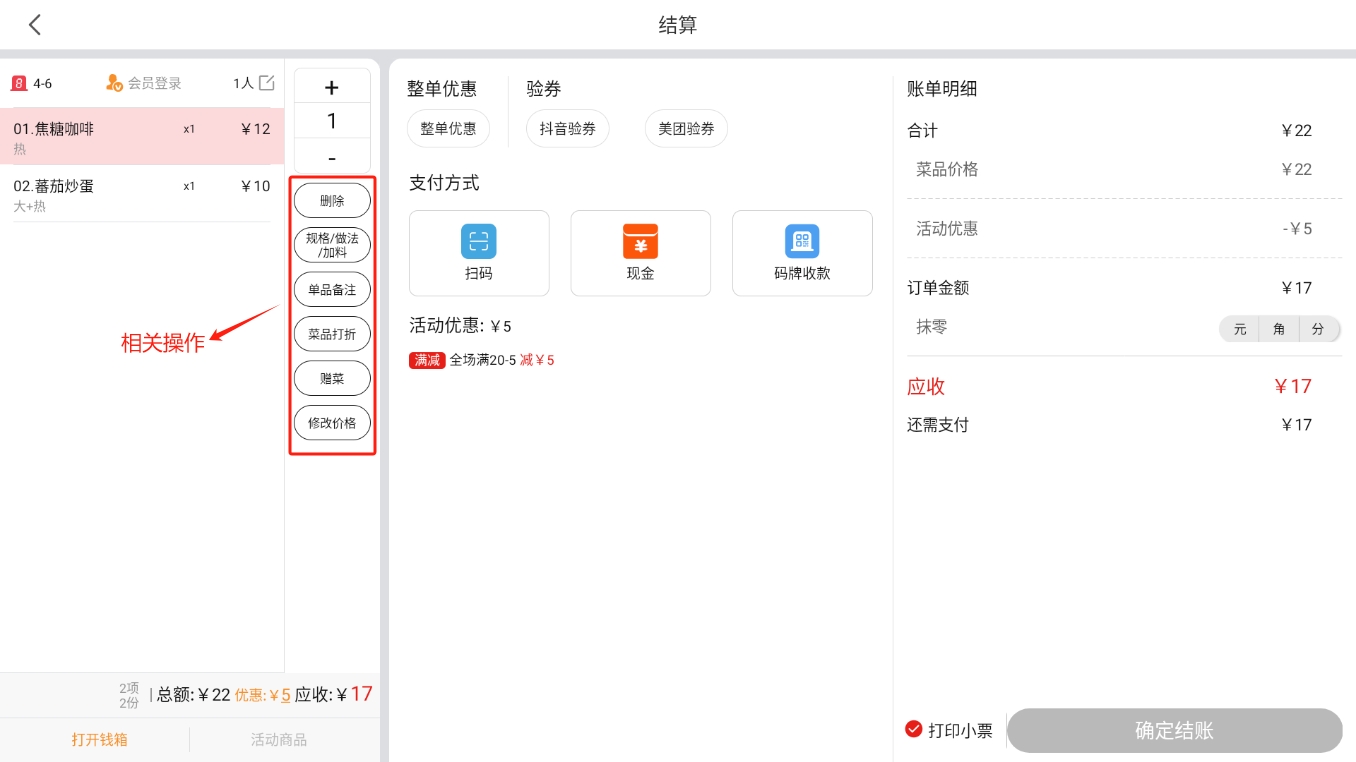 - 小票:打印制作小票