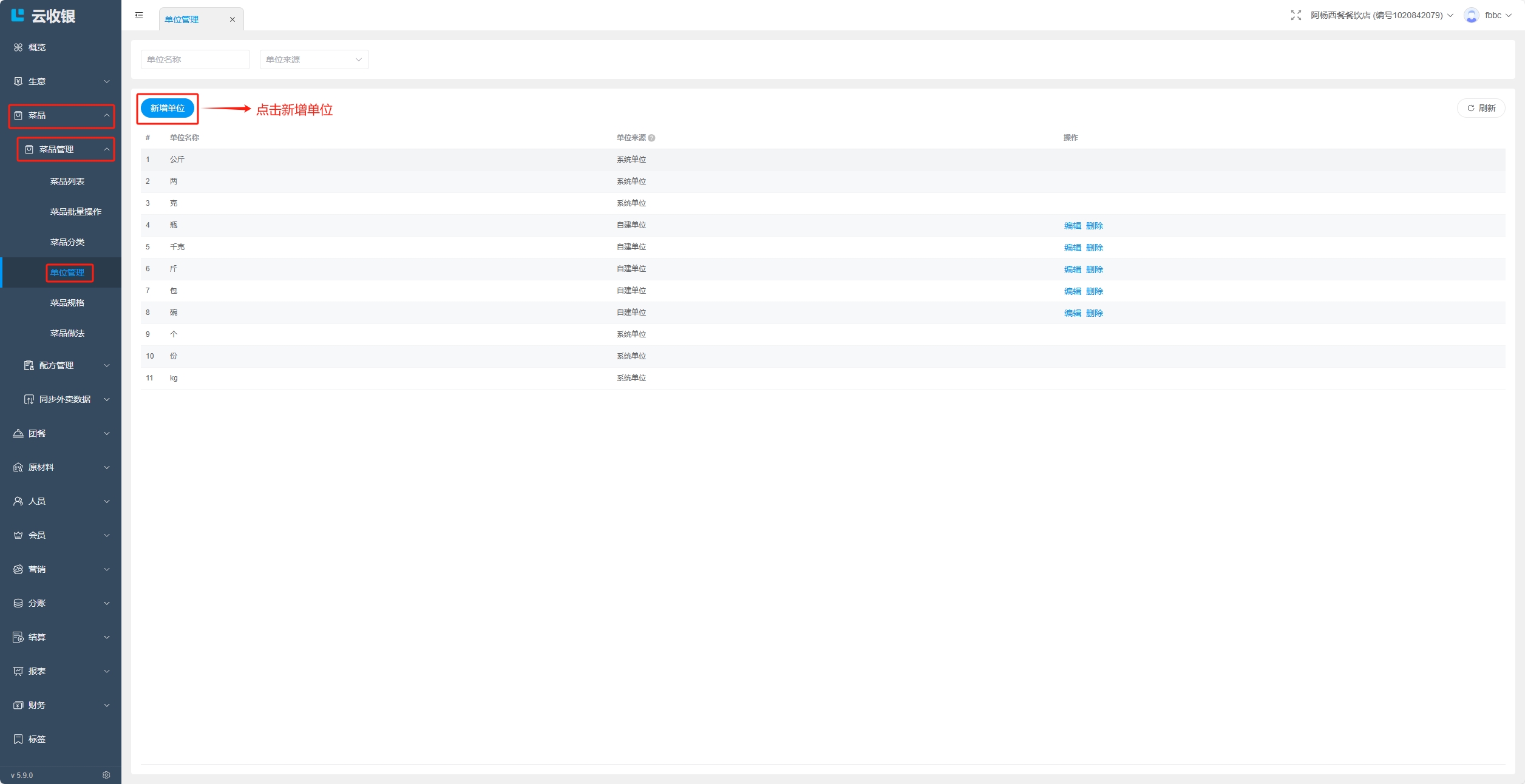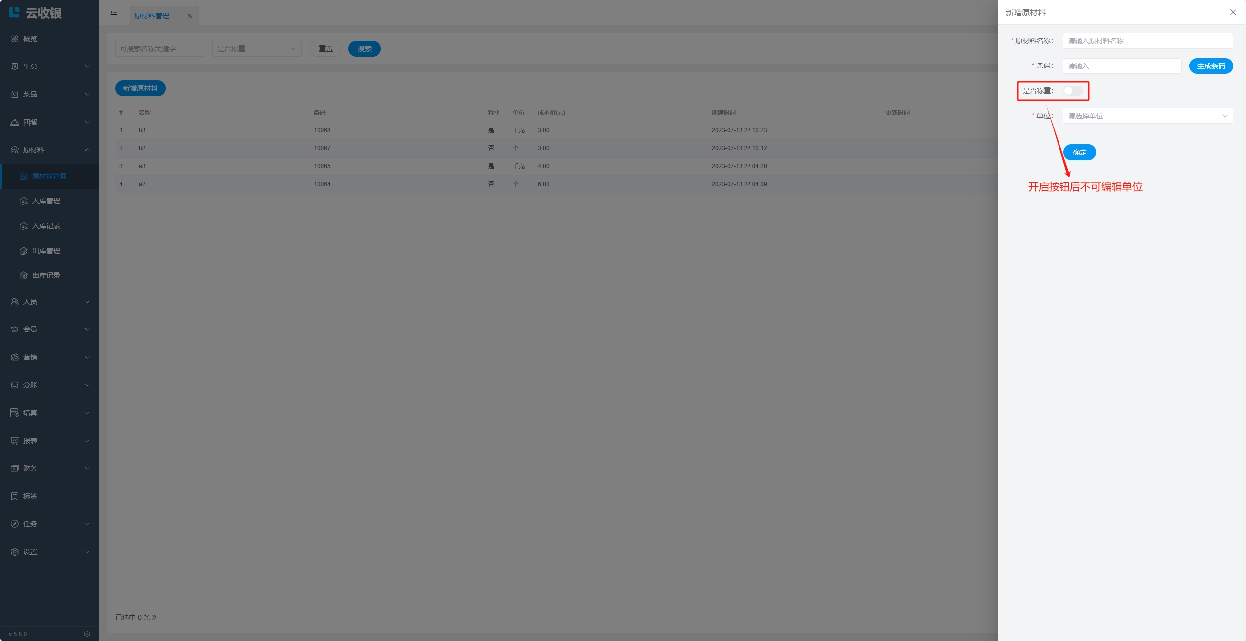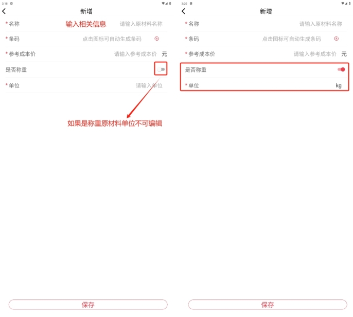 称重菜菜品单位默认为kg,因此新建称重菜品时,无菜品单位的字段;
