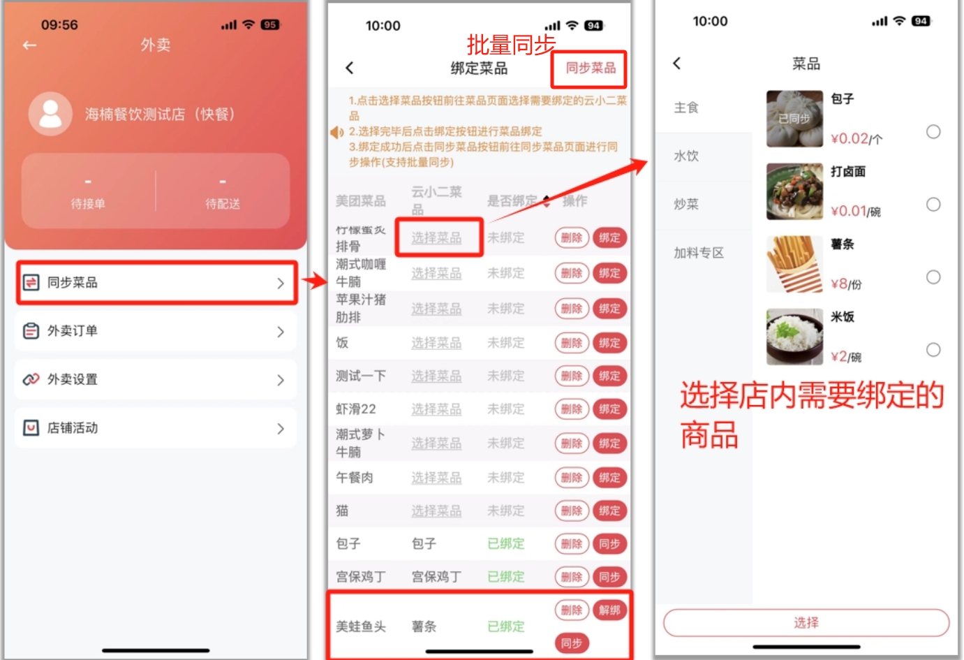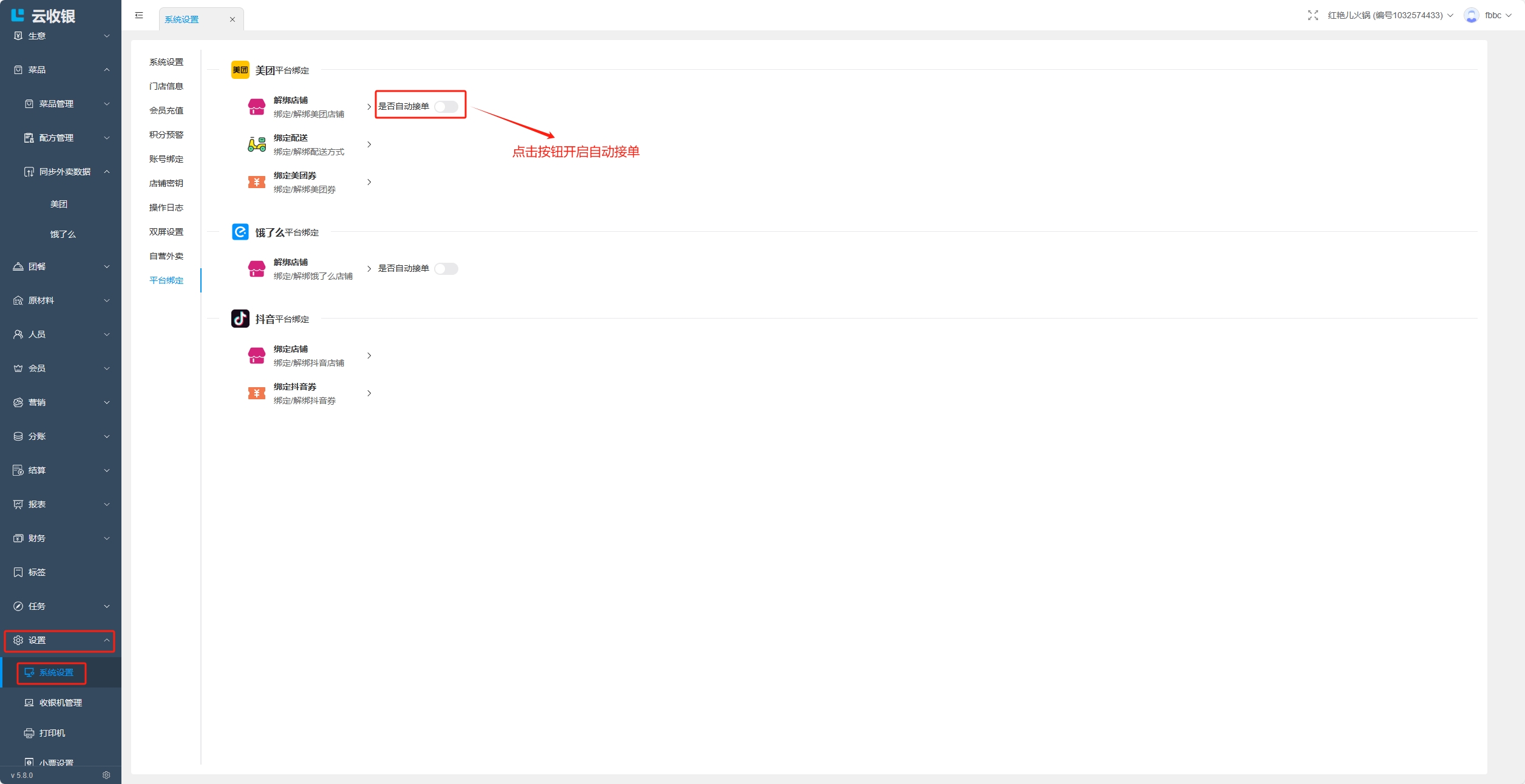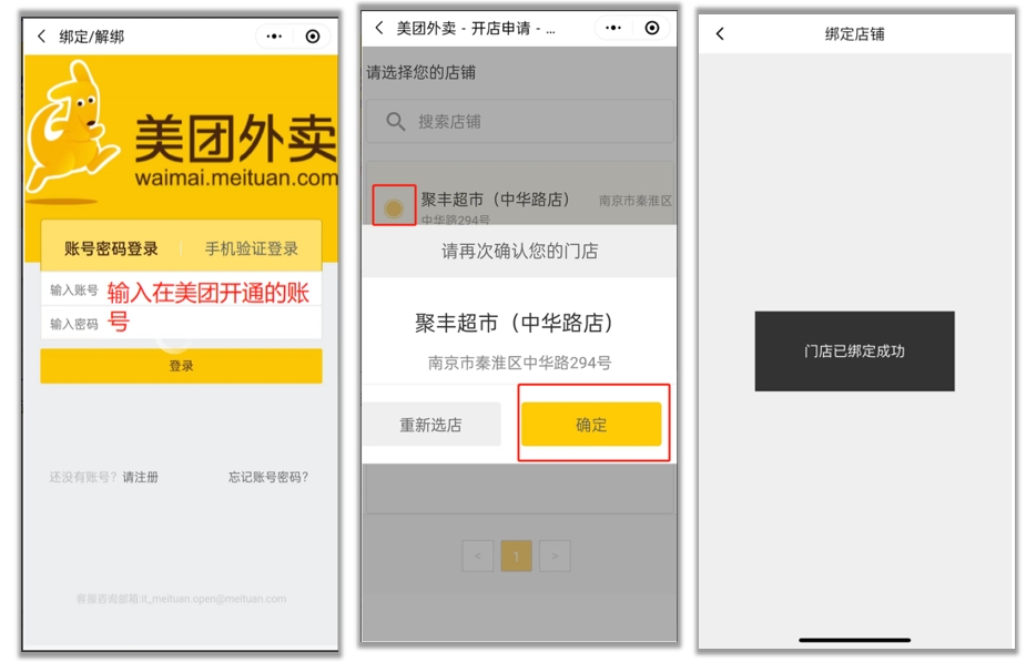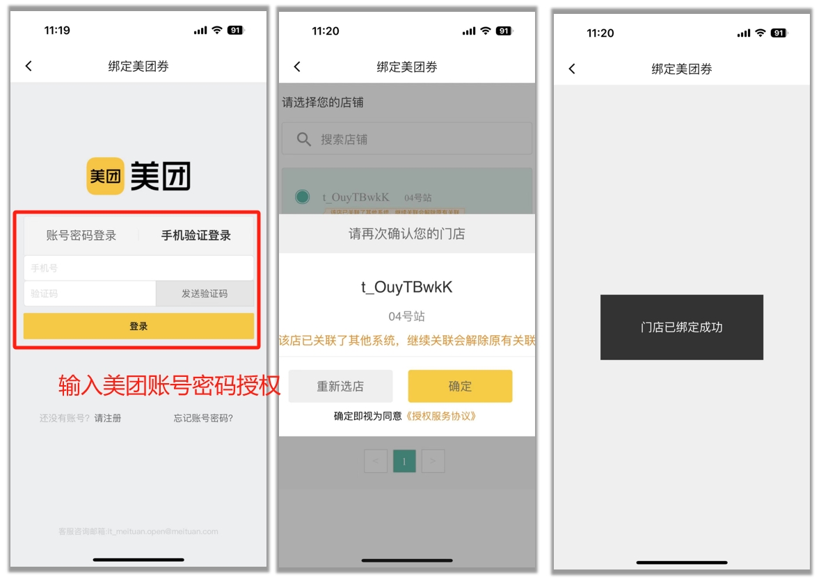绑定美团、饿了么和抖音平台的店铺、配送、券;