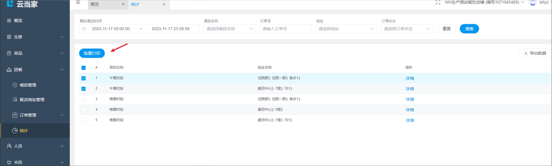 批量打印订单: