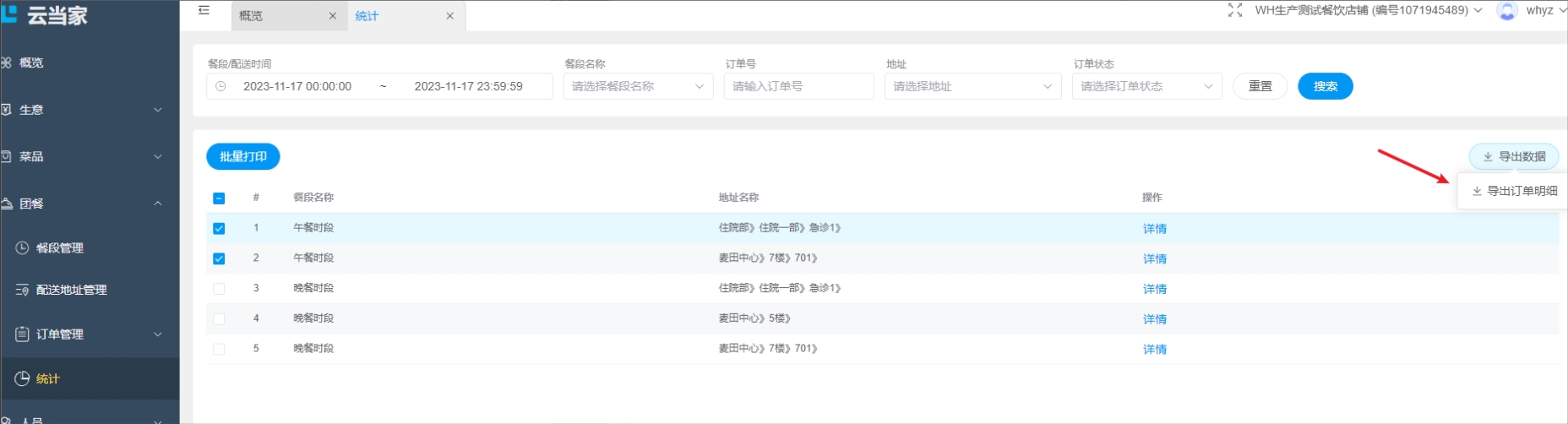 导出订单数据: