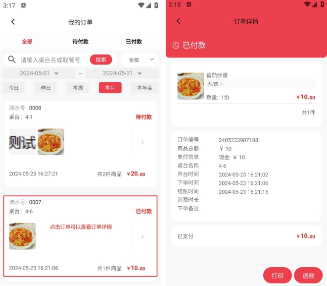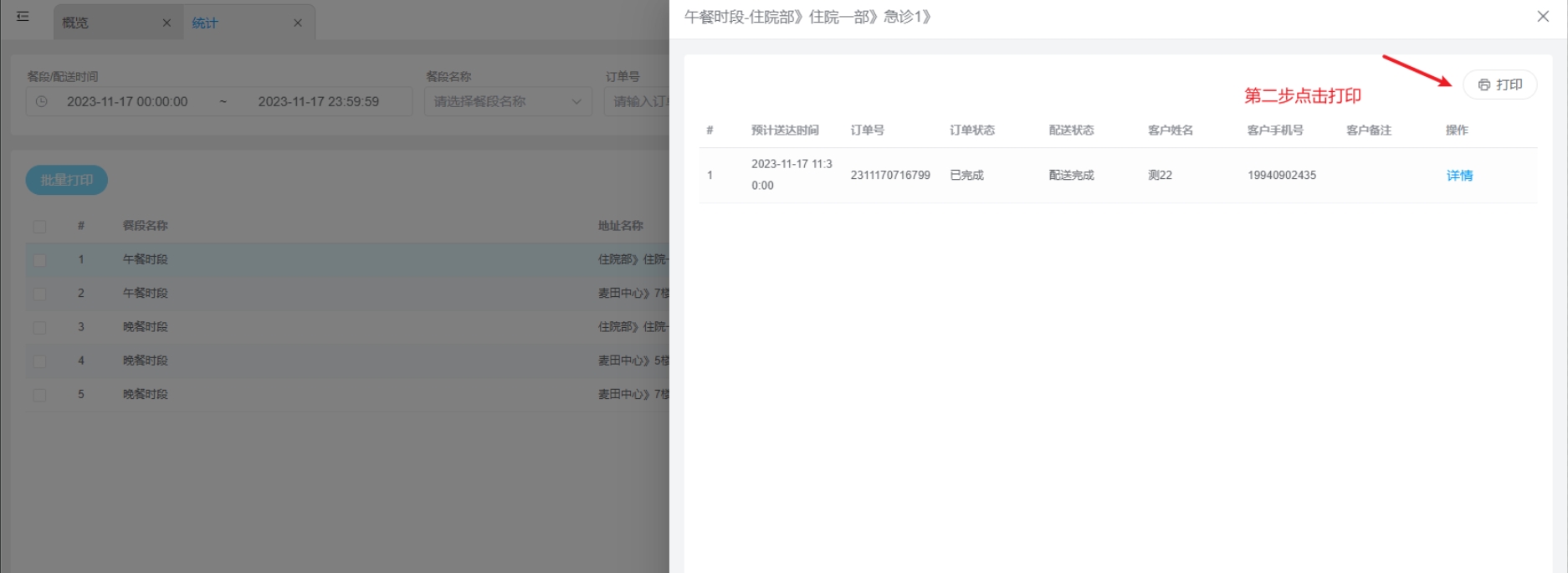打印详情订单: