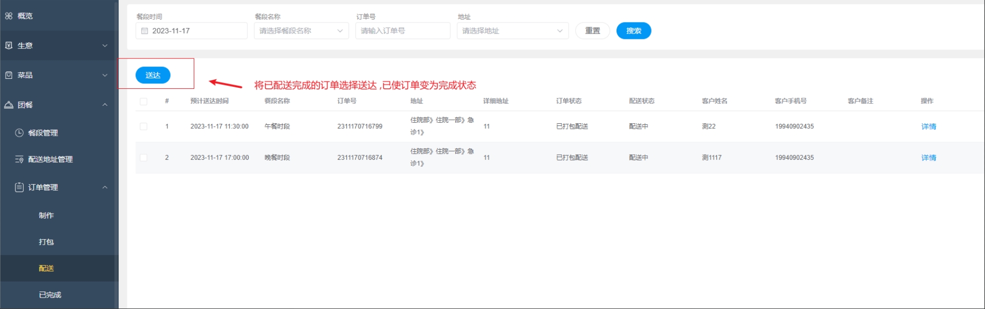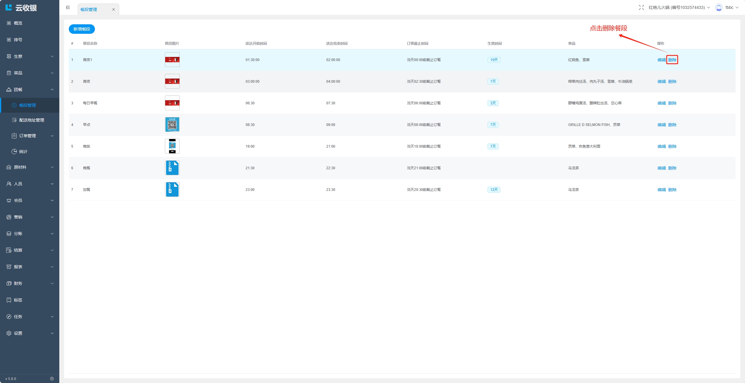 删除餐段: