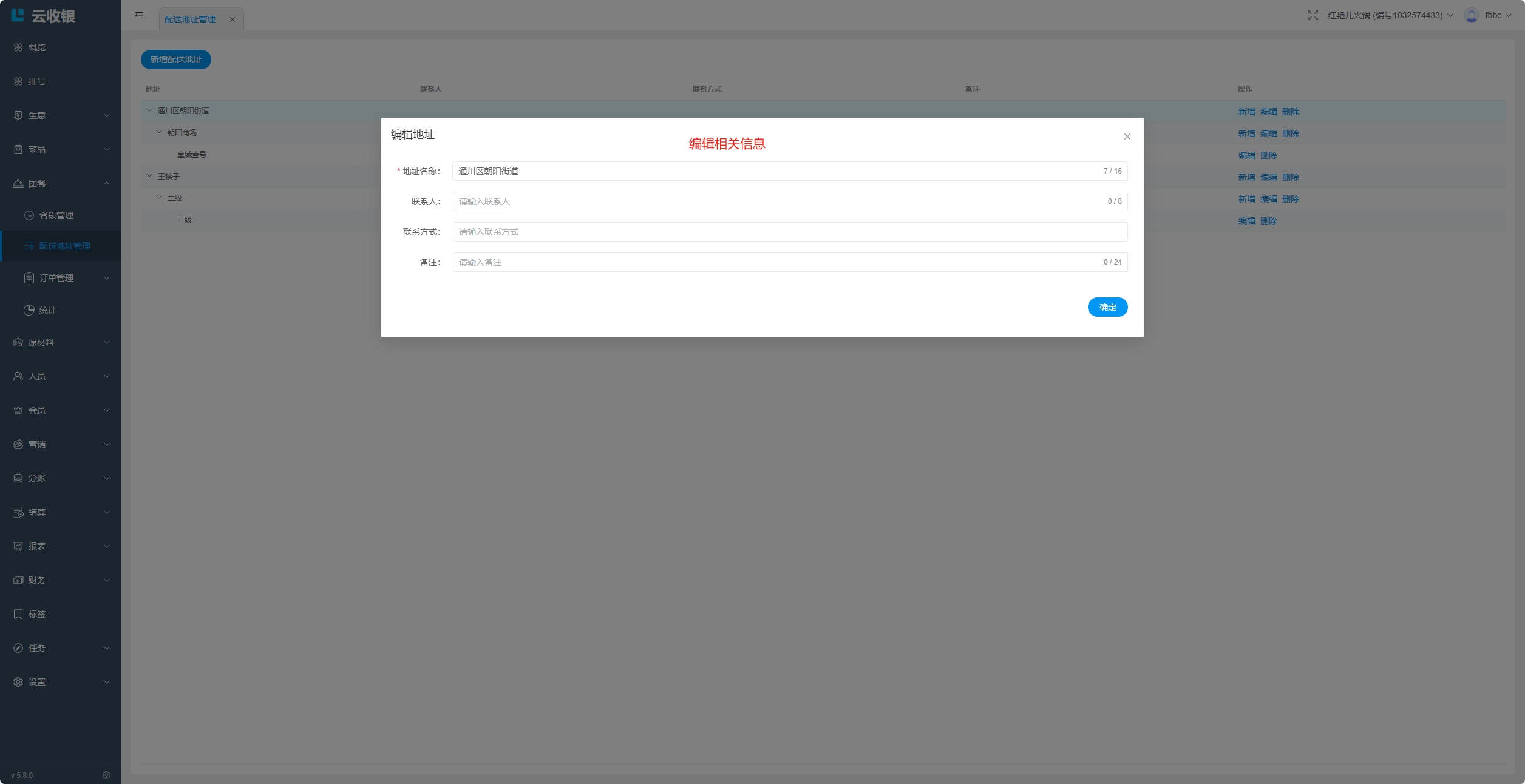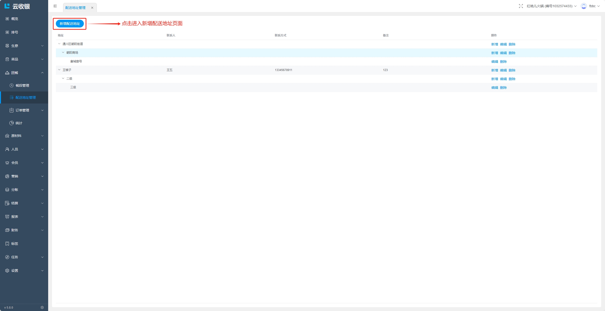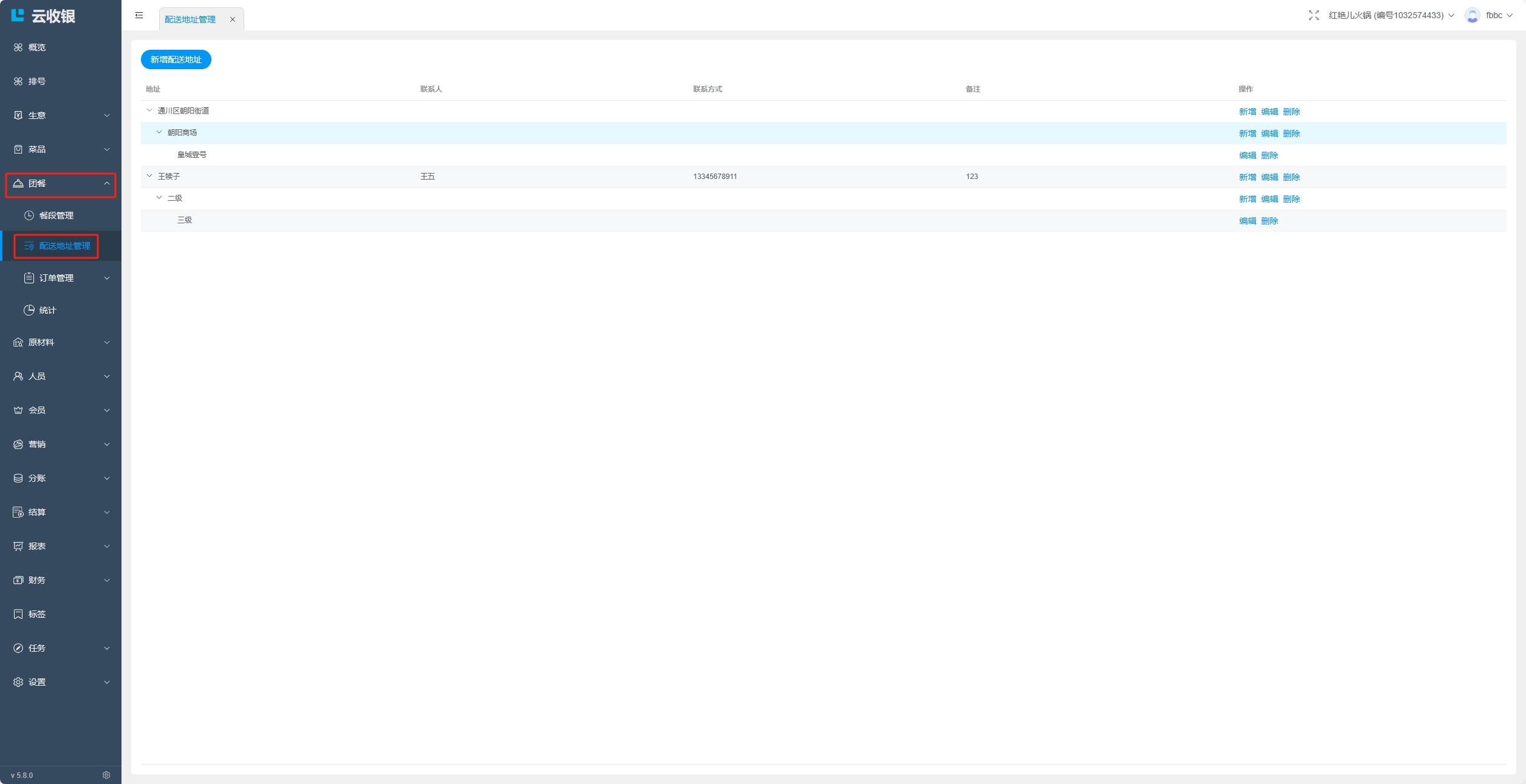 地址可添加三级;