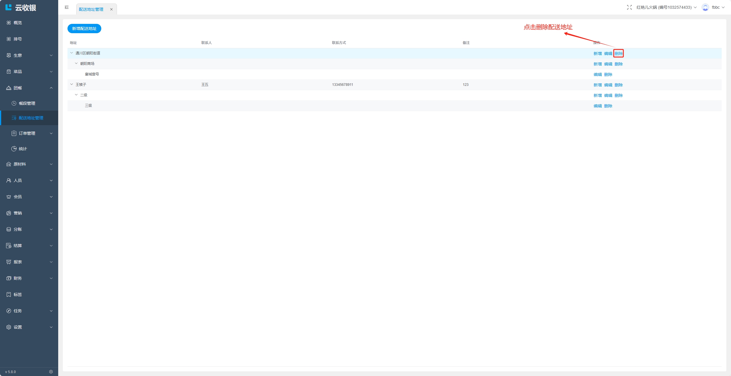 删除配送地址: