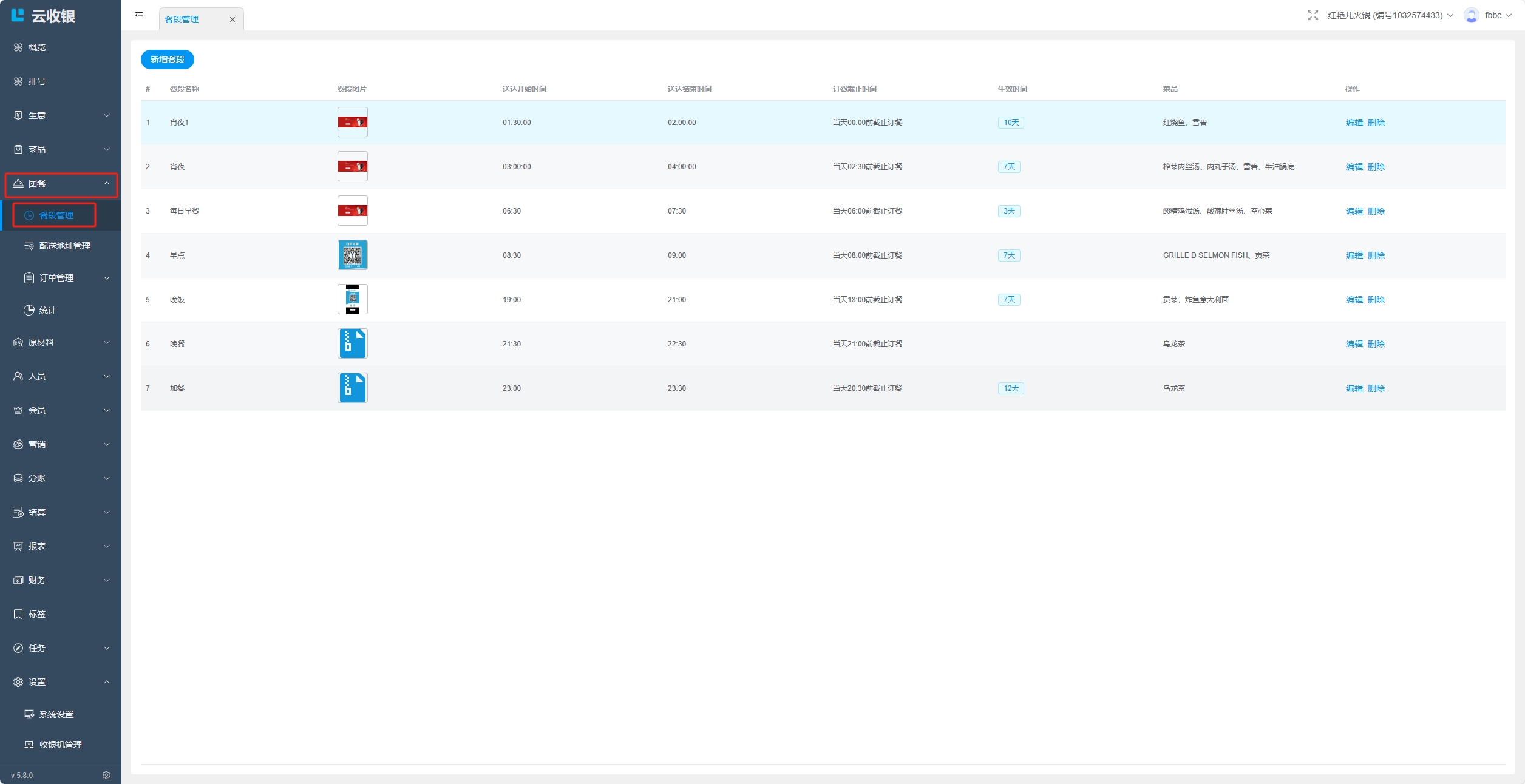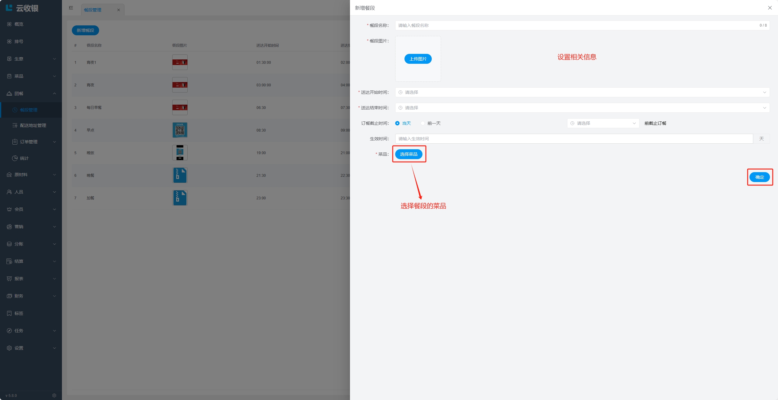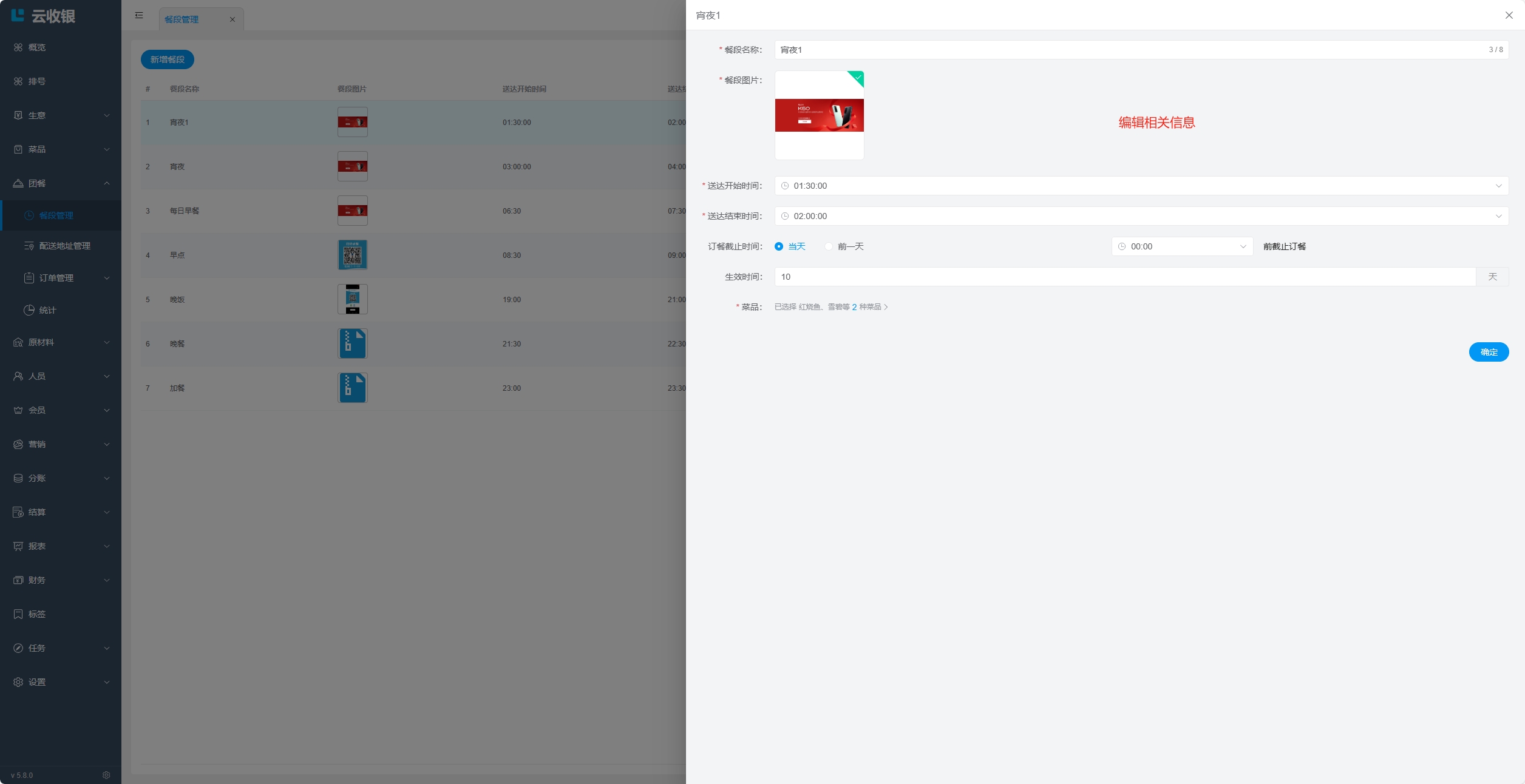 4.餐段不能跨天设置;