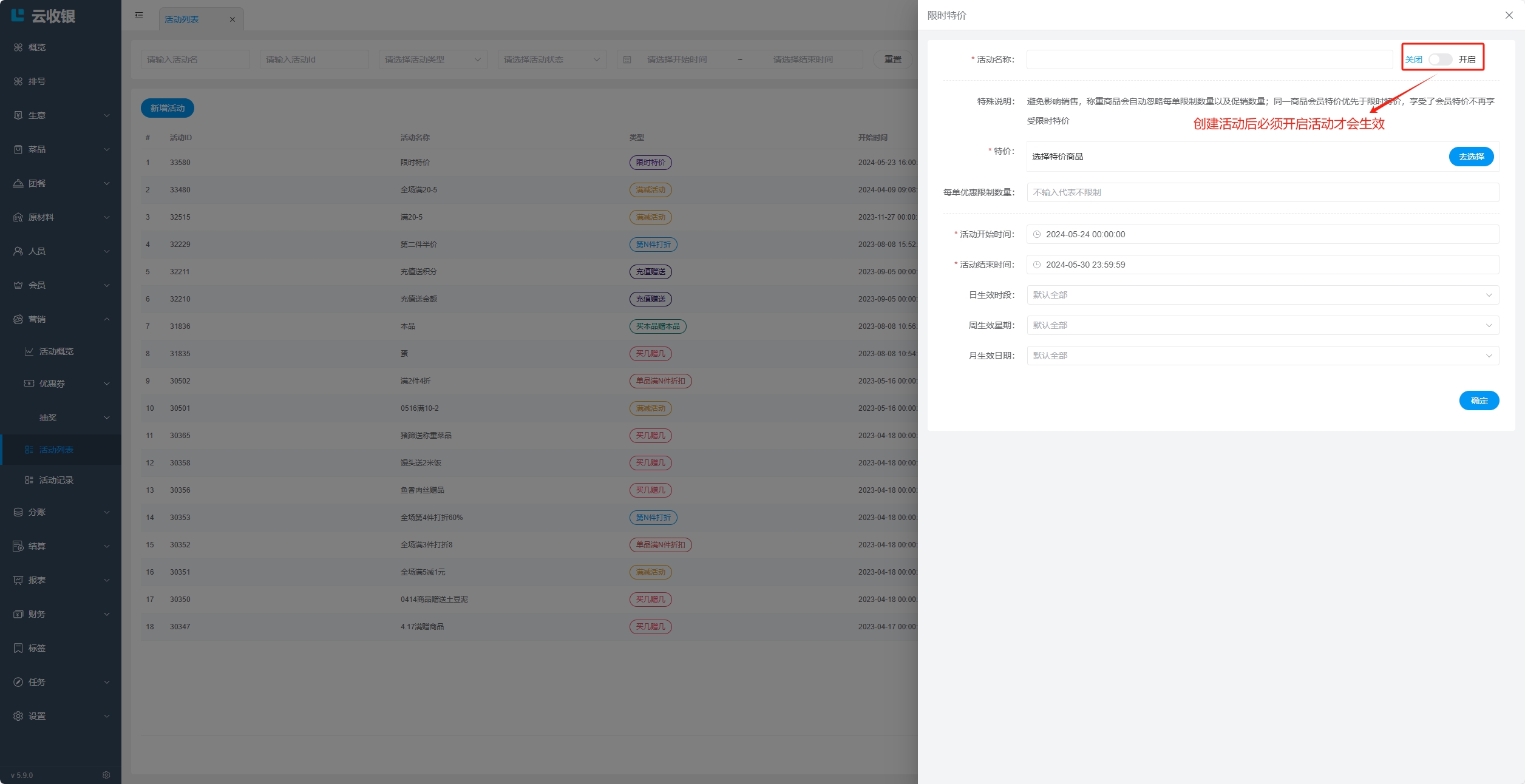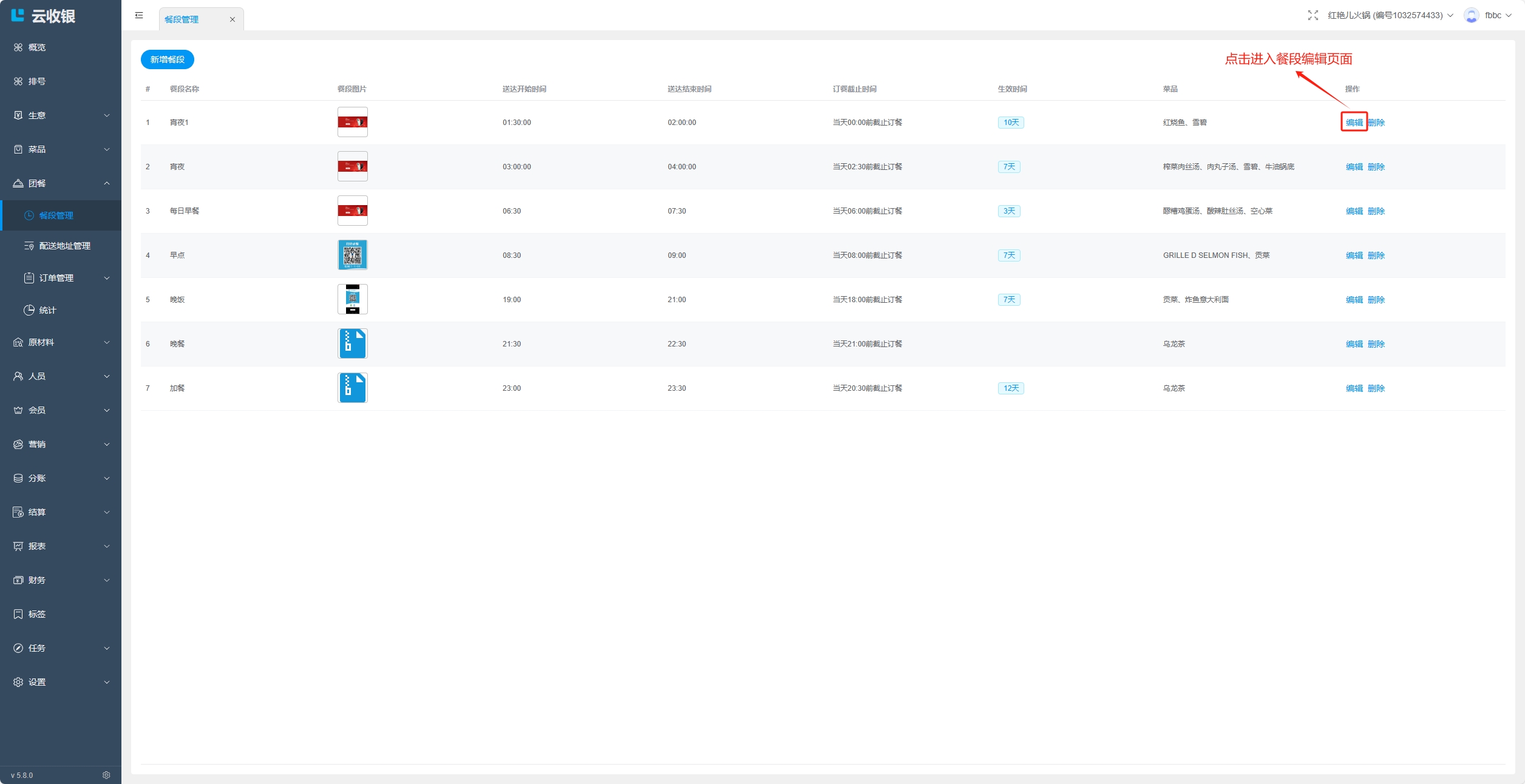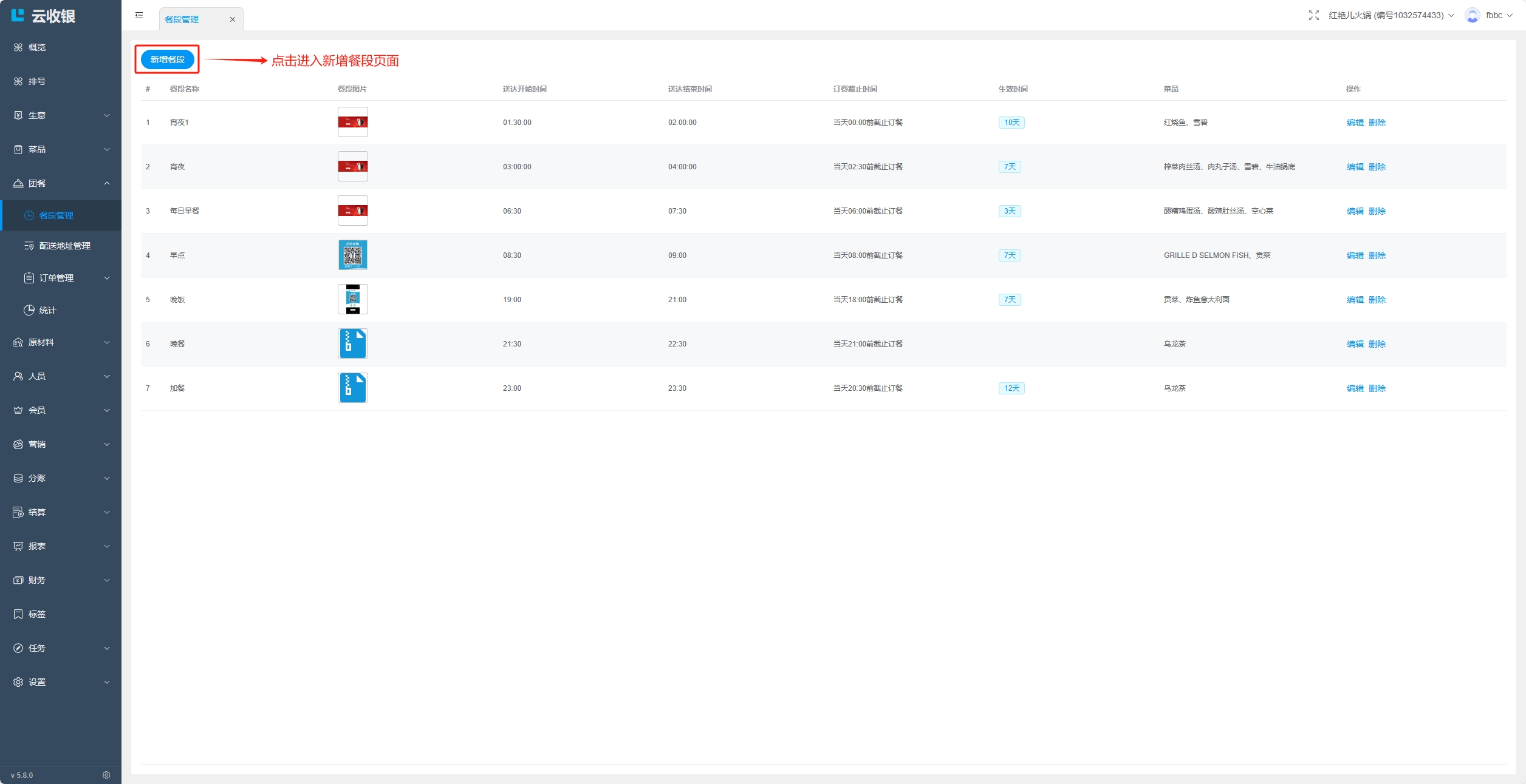 4.餐段不能跨天设置;