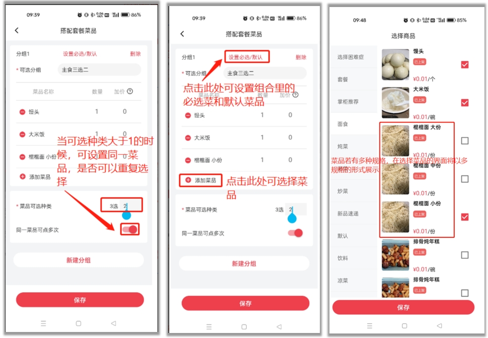 - 可选搭配:套餐内菜品,支持顾客自由组合搭配;