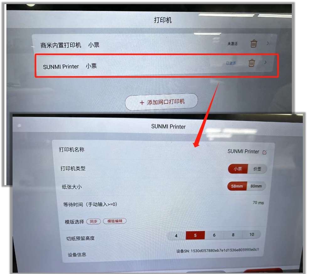 门店收银机上已连接的USB打印机或网口打印机也会展示在设备列表中,根据个别场景需要,也可以选择用来打印制作单;
