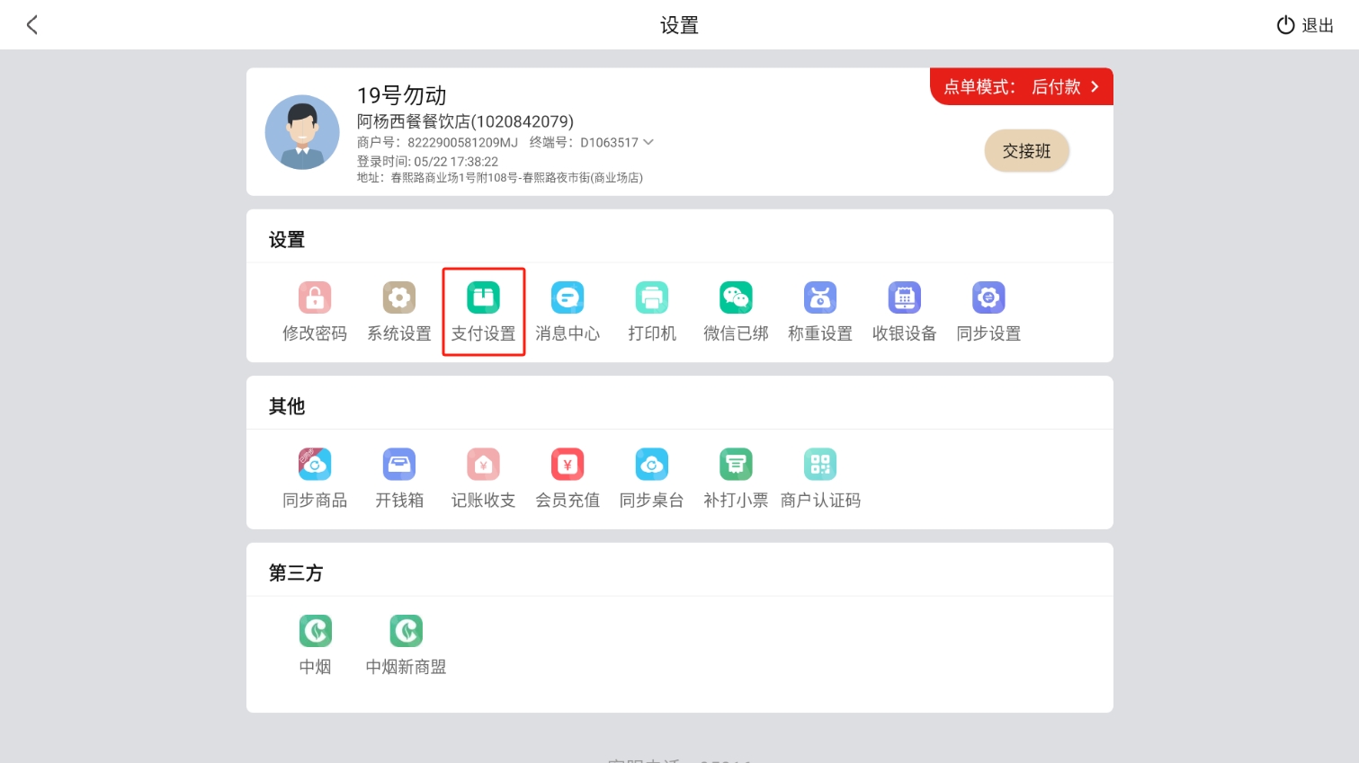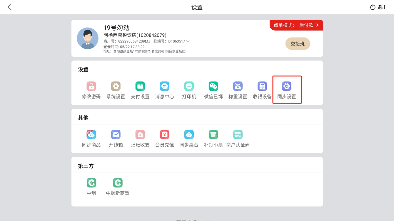 点击设置-交接班按钮进入交接班界面: