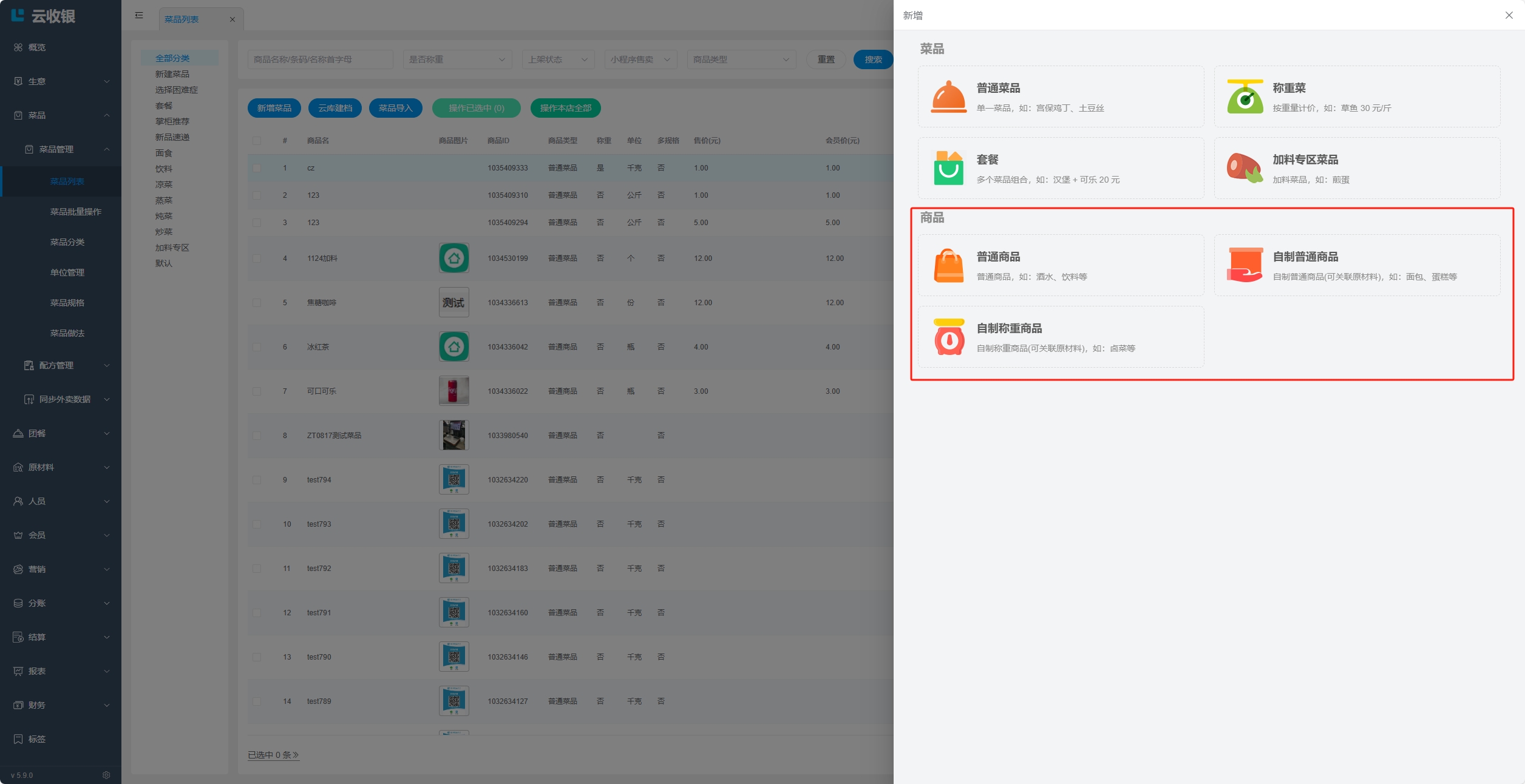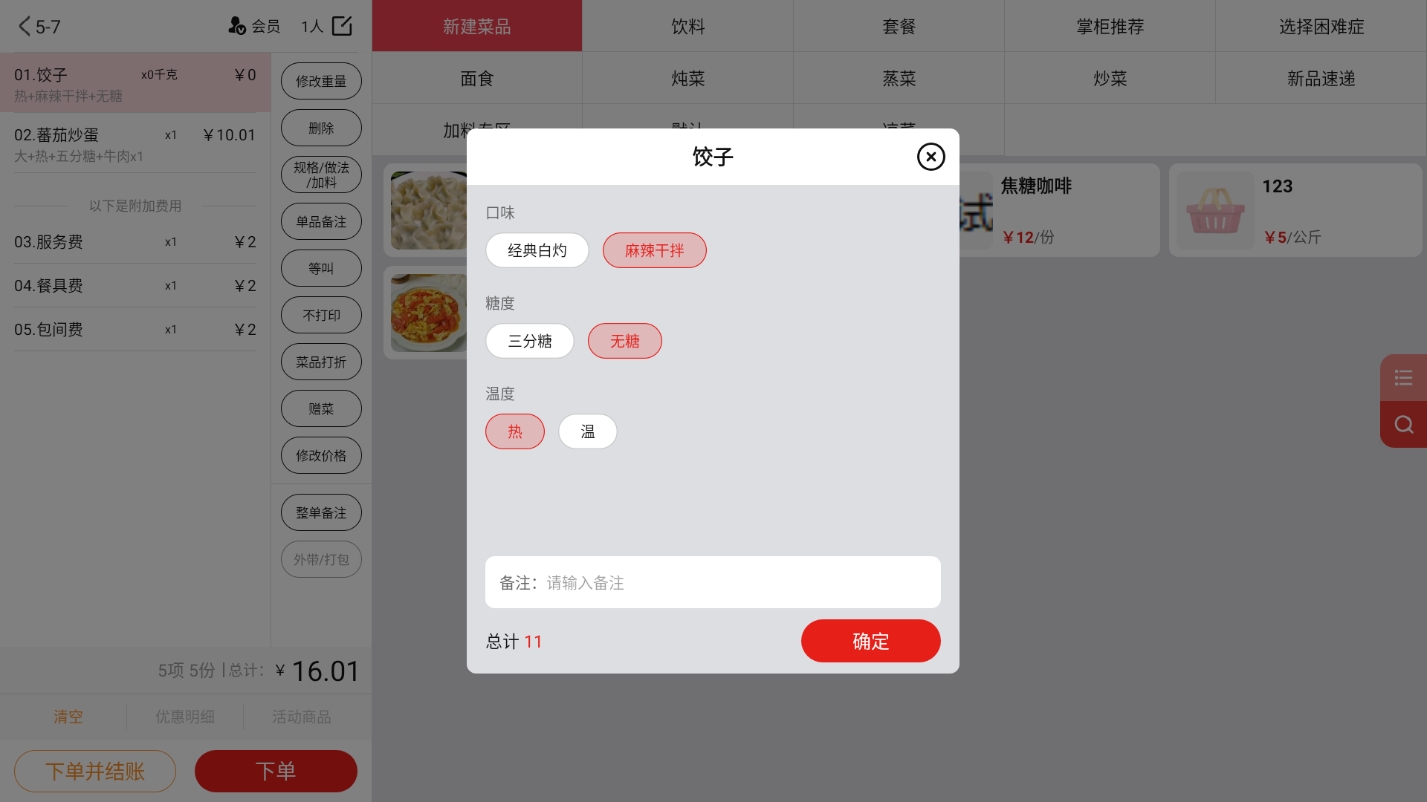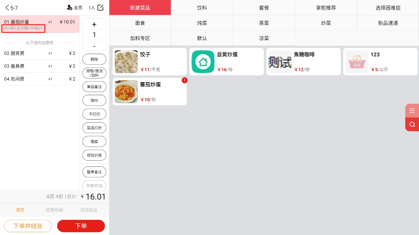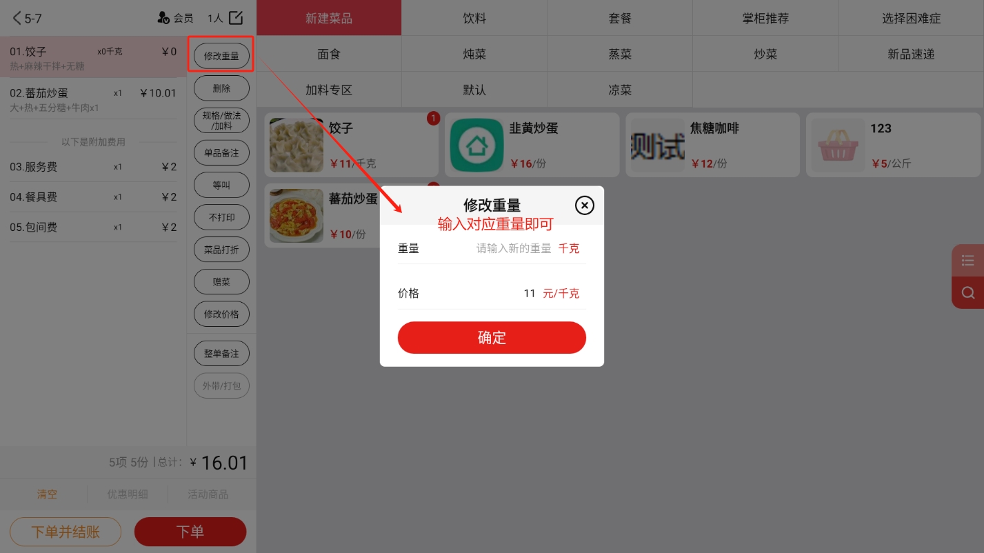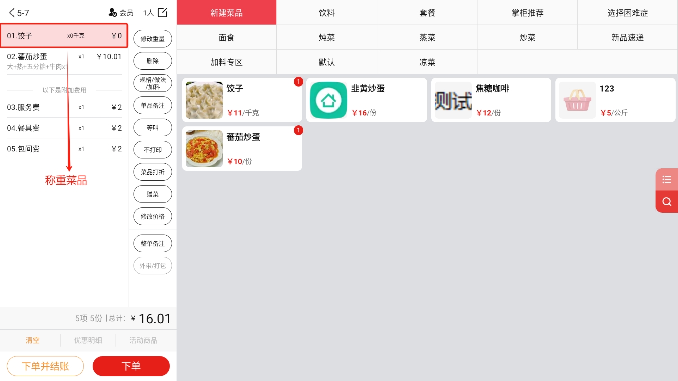 4.2.2.1 普通菜品、称重菜