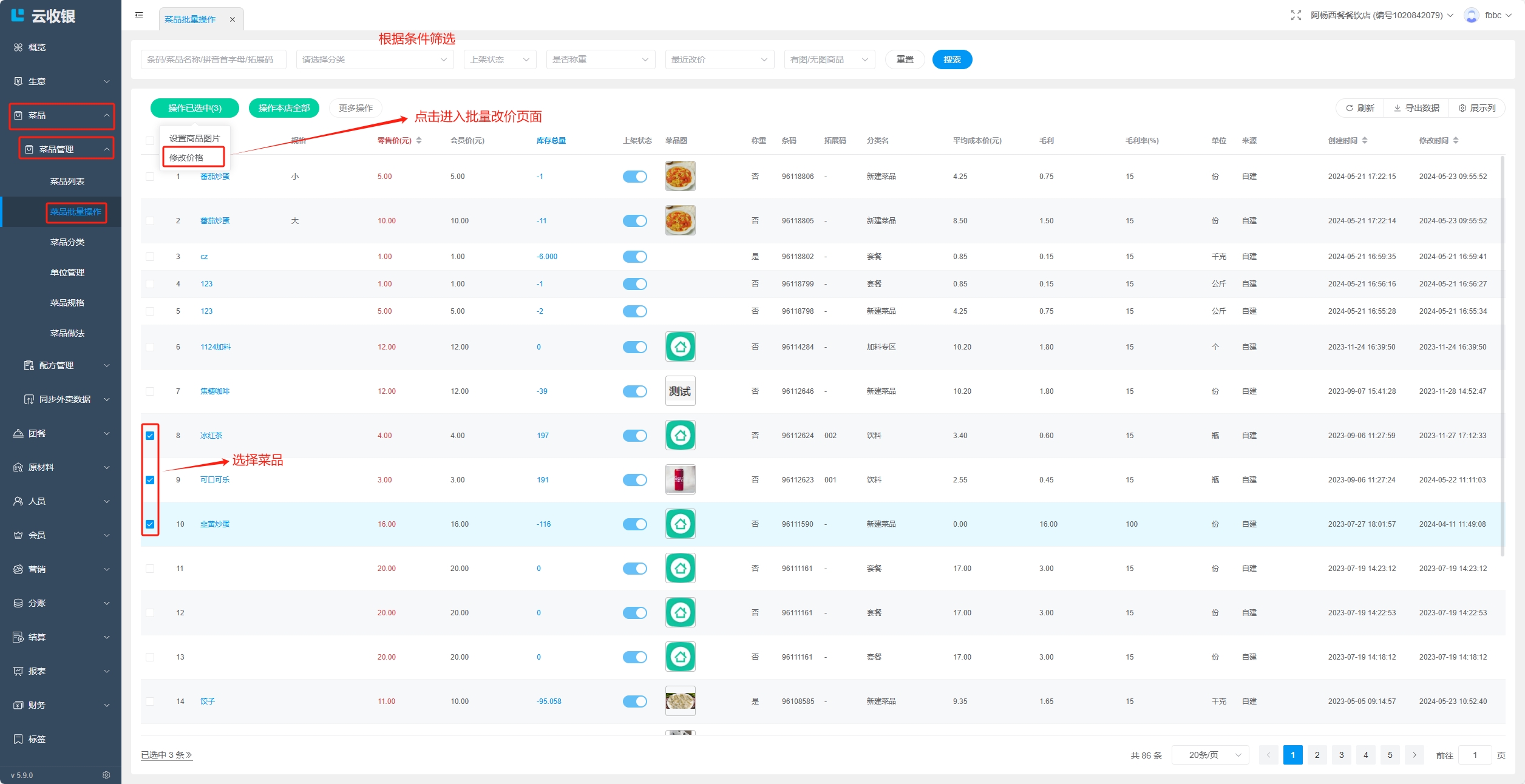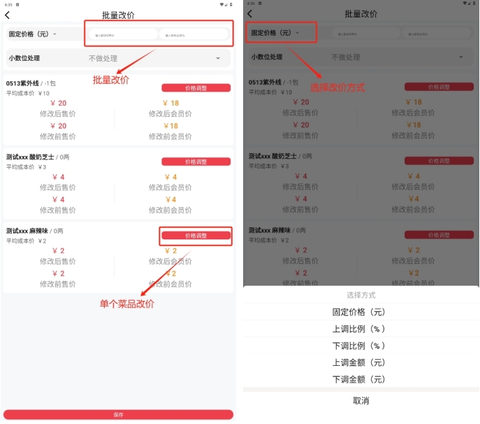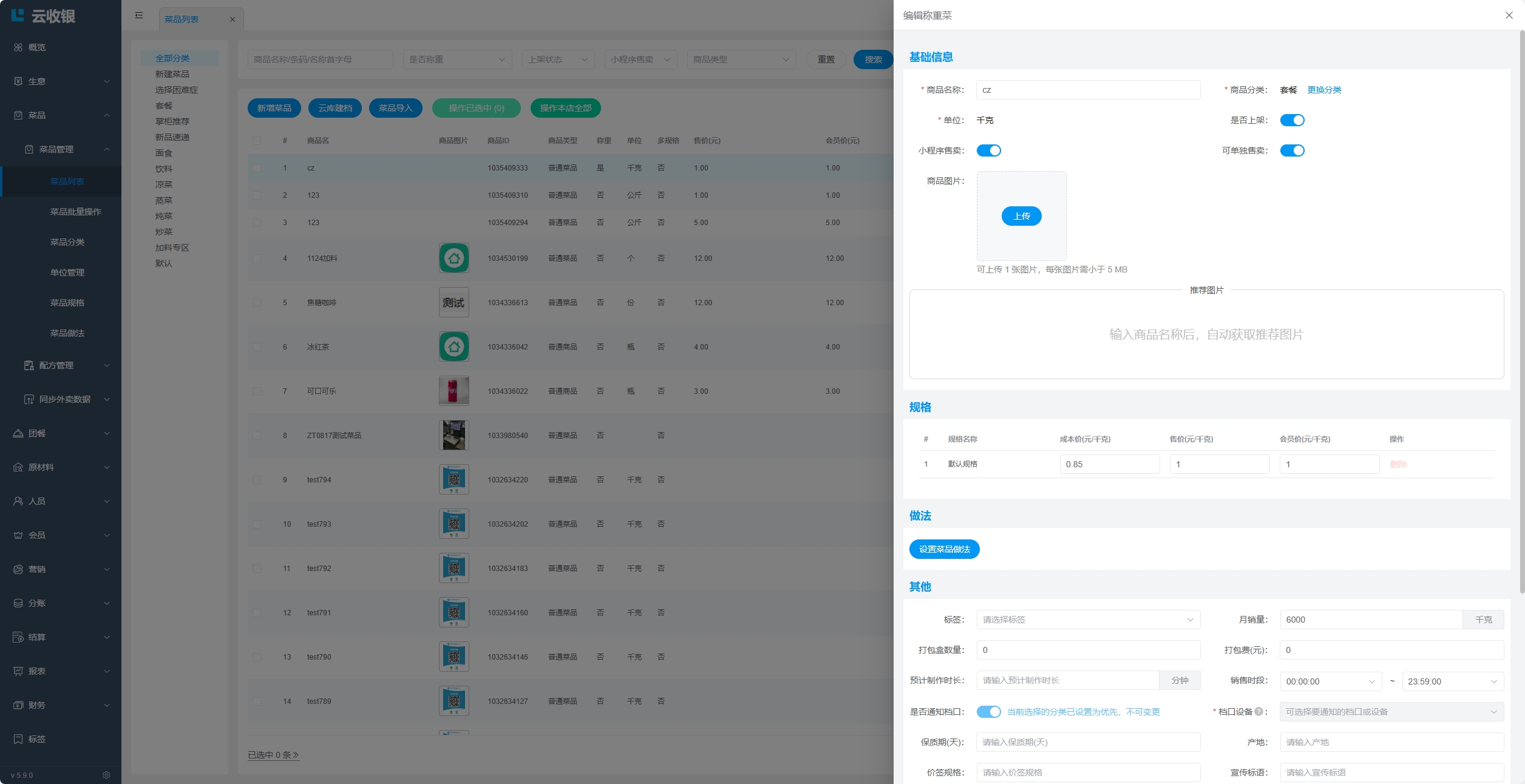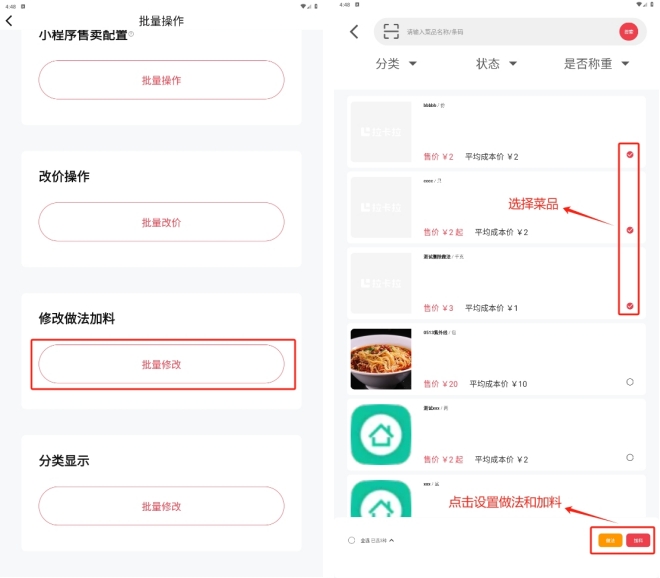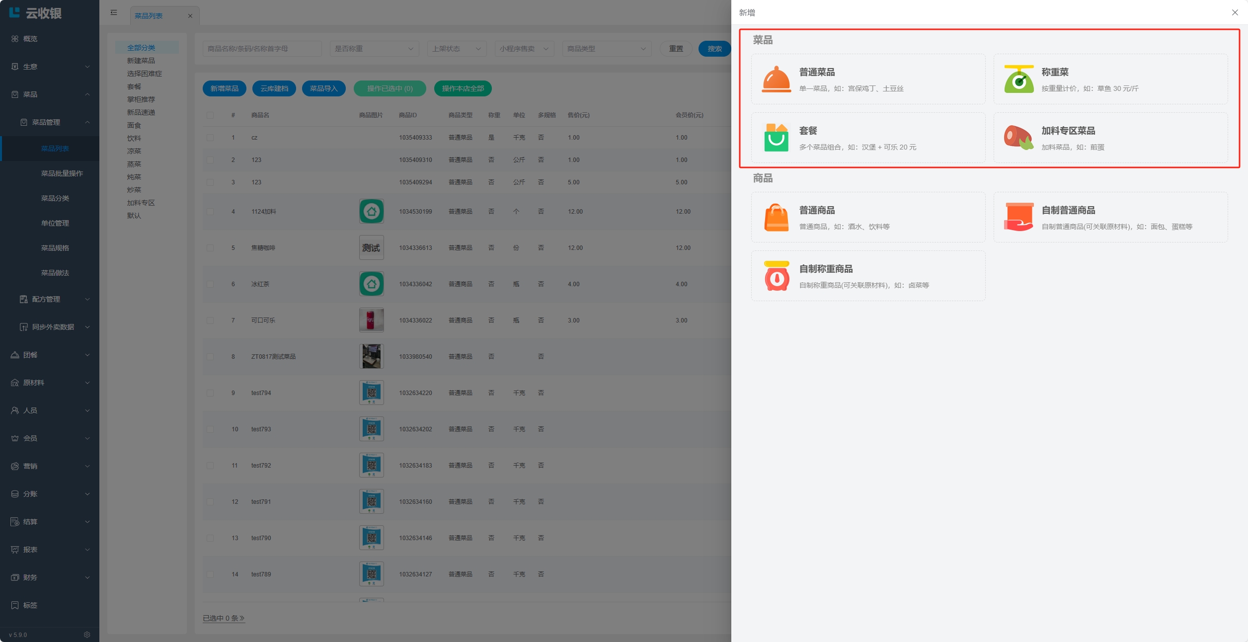 4.2.2.1 普通菜品、称重菜