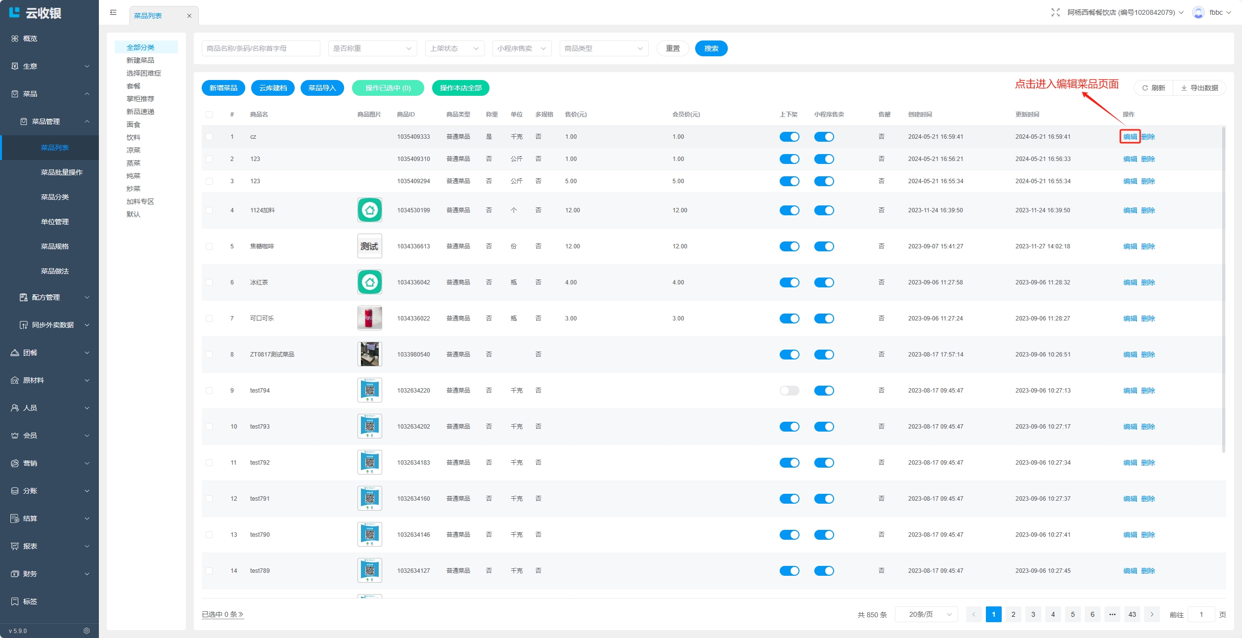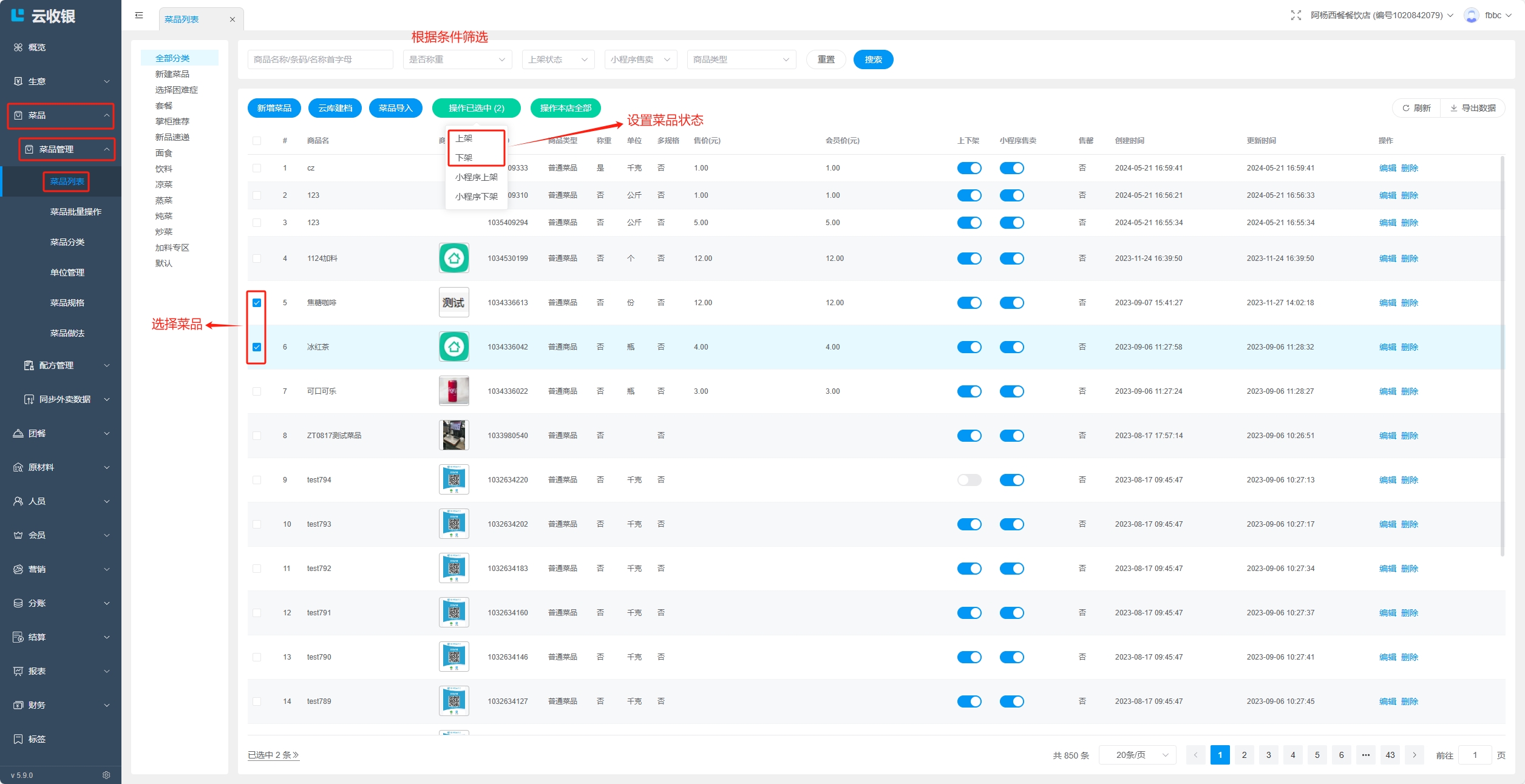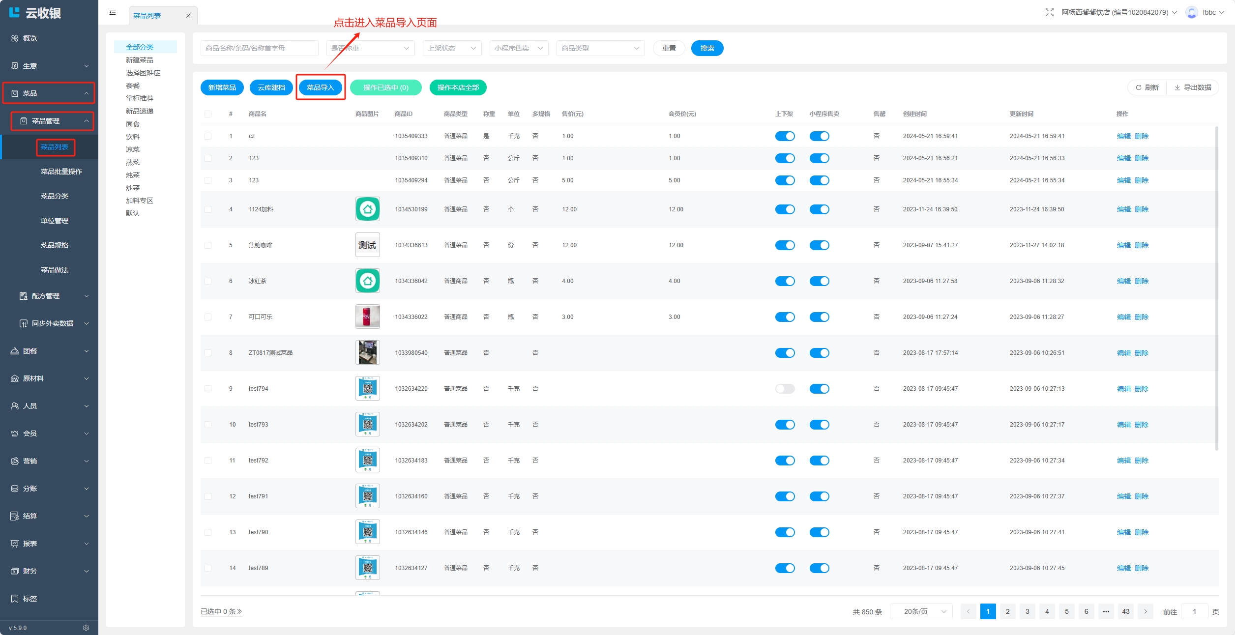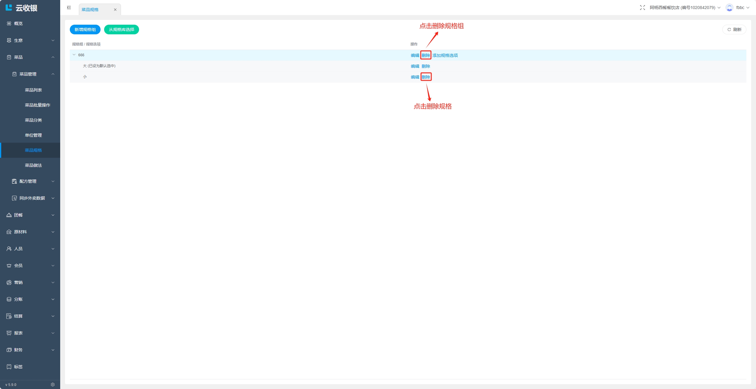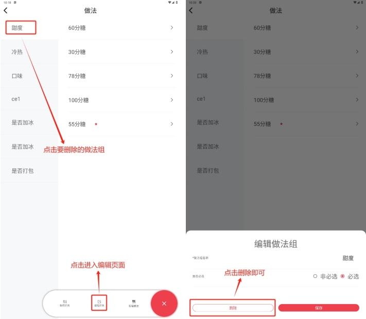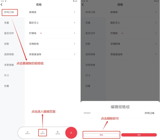 当分类存在下级分类,或者分类下存在菜品时,分类无法删除,删除需要按照如下操作处理: