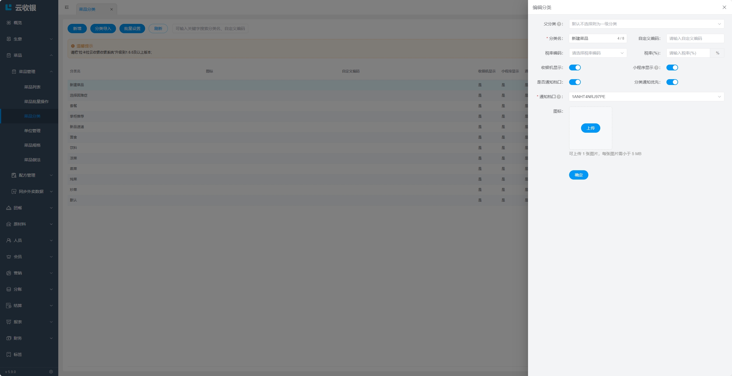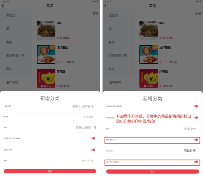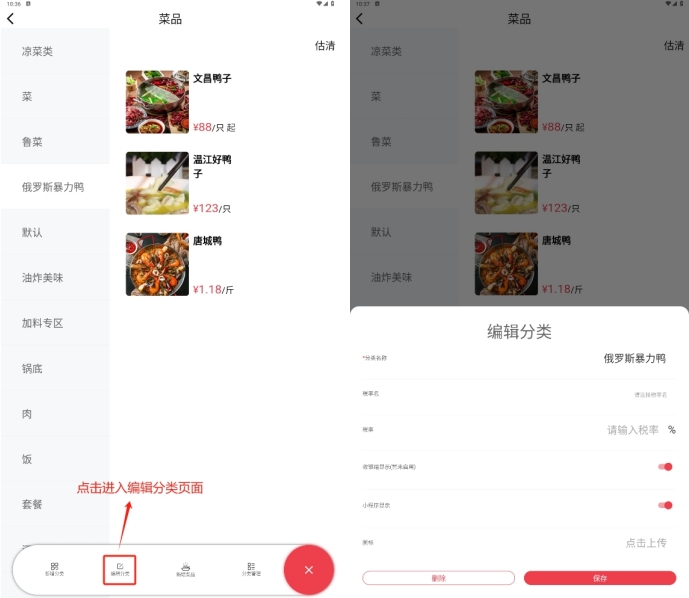 菜品分类可以在【PC管理端】和【APP端】进行维护;