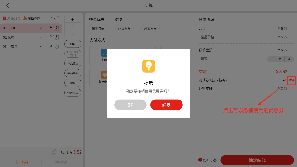 可以撤销优惠券的使用;