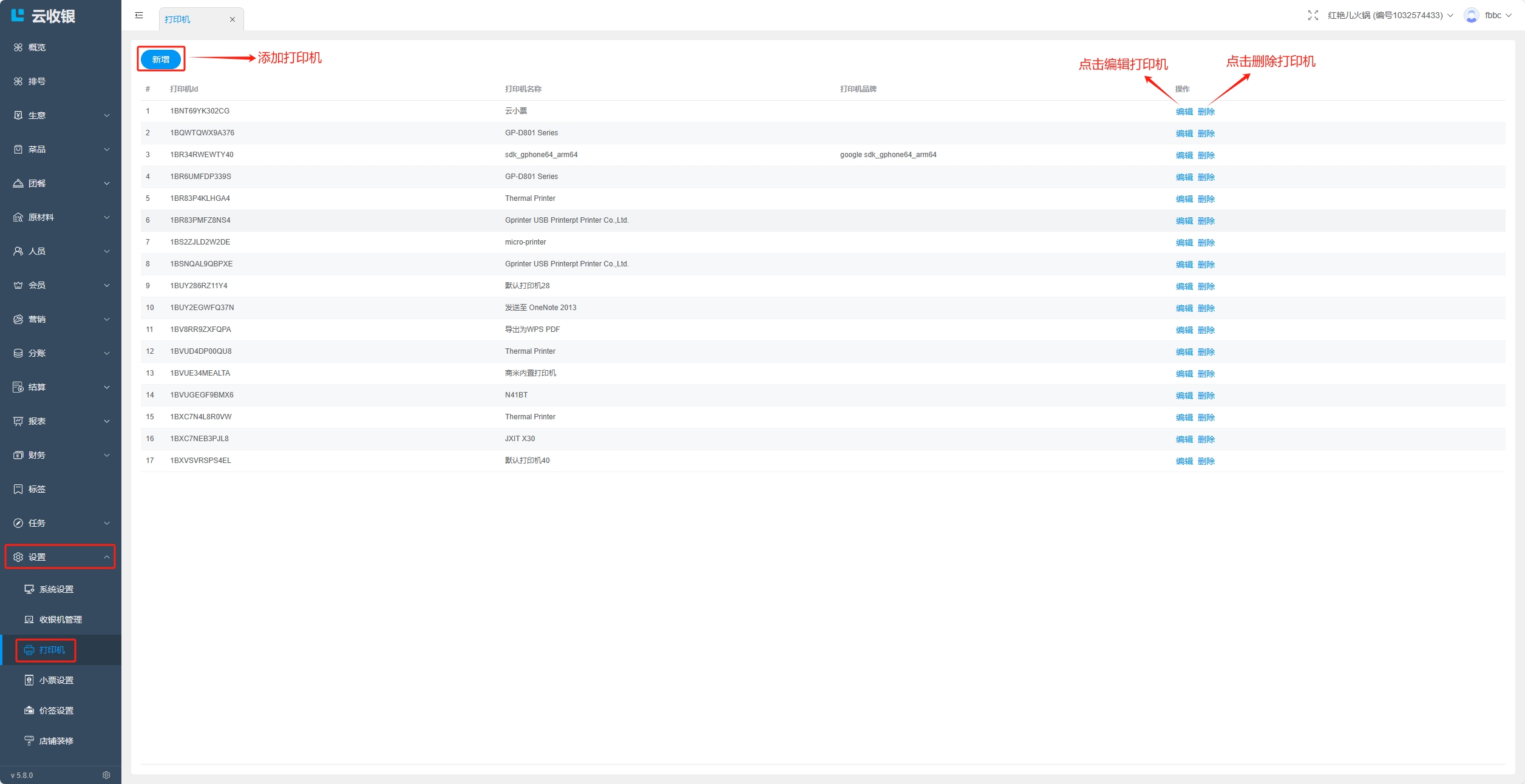 设置店铺的打印机;