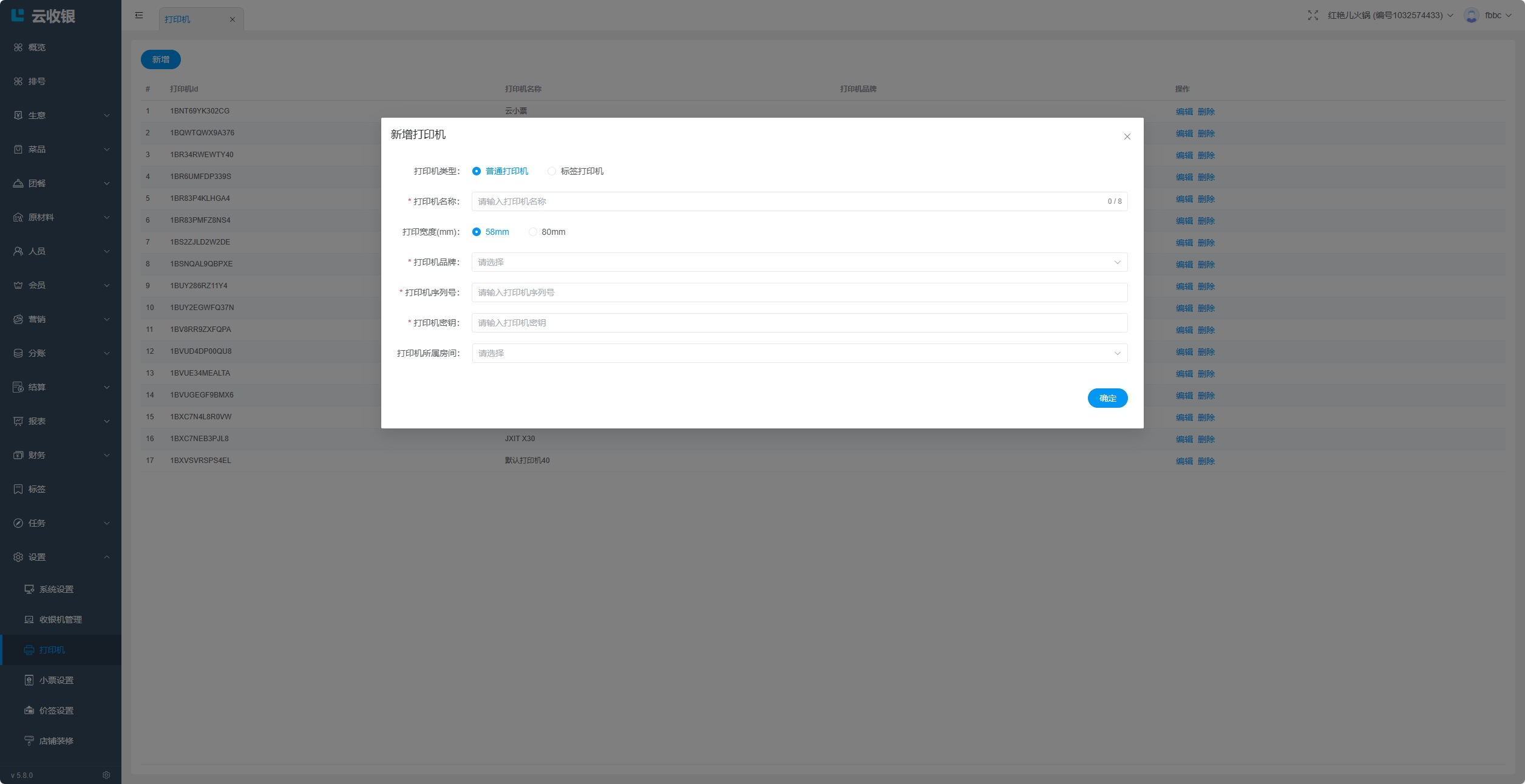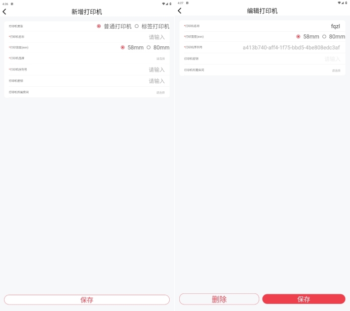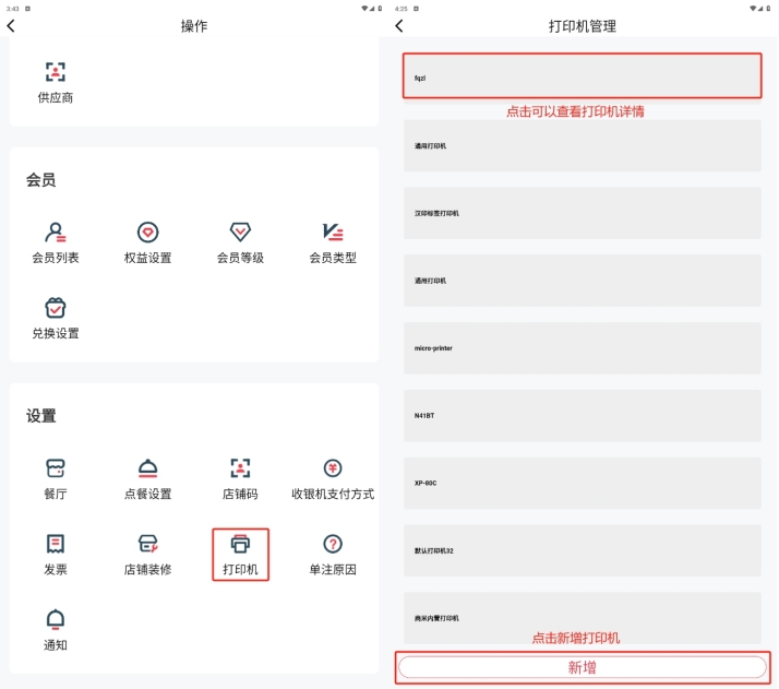 如果后厨使用云打印机,在APP中按照提示填写资料新增;