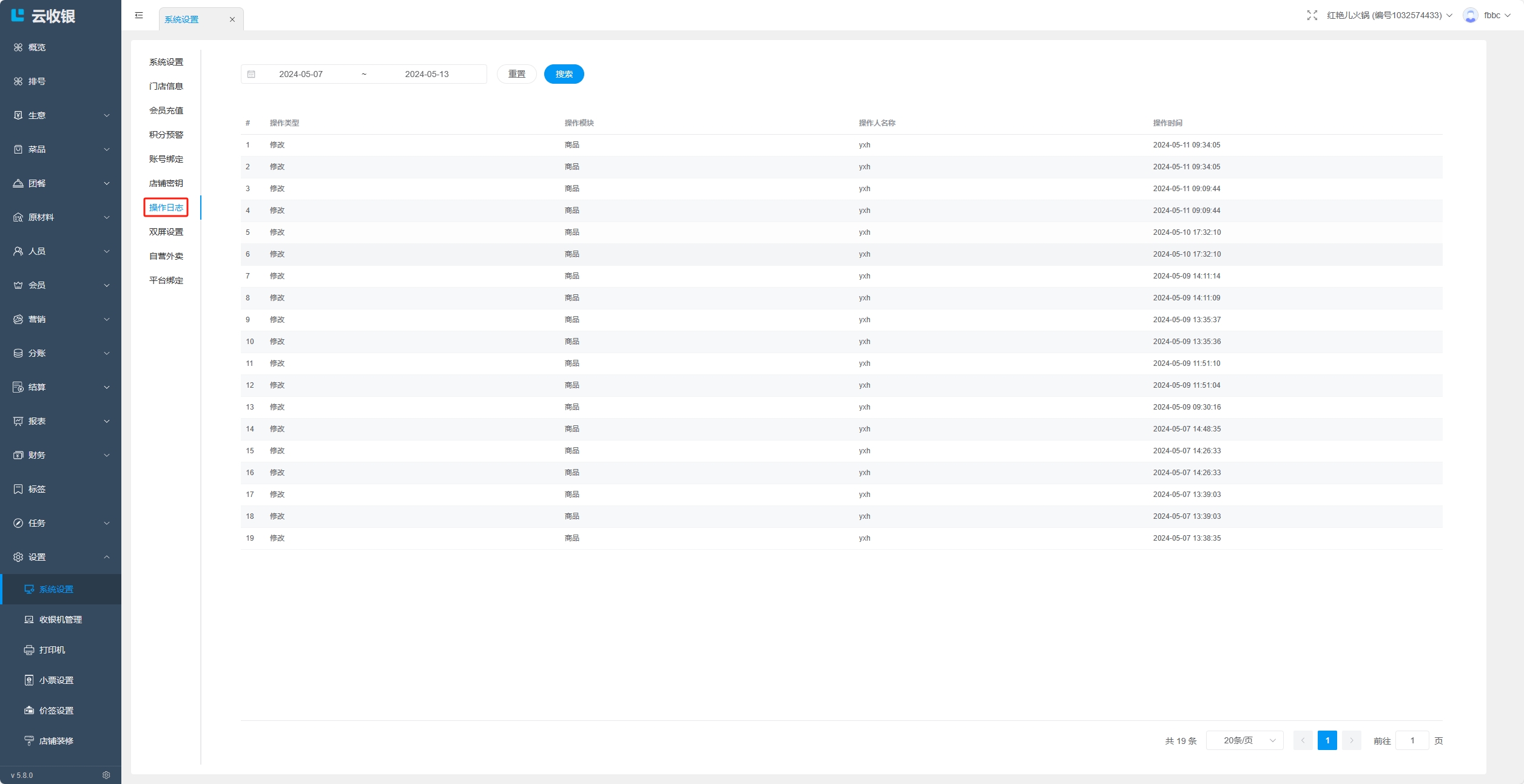 操作日志默认查询7天的操作日志,可以自行选择时间进行查询,操作日志只记录对商品进行的删除和修改操作;