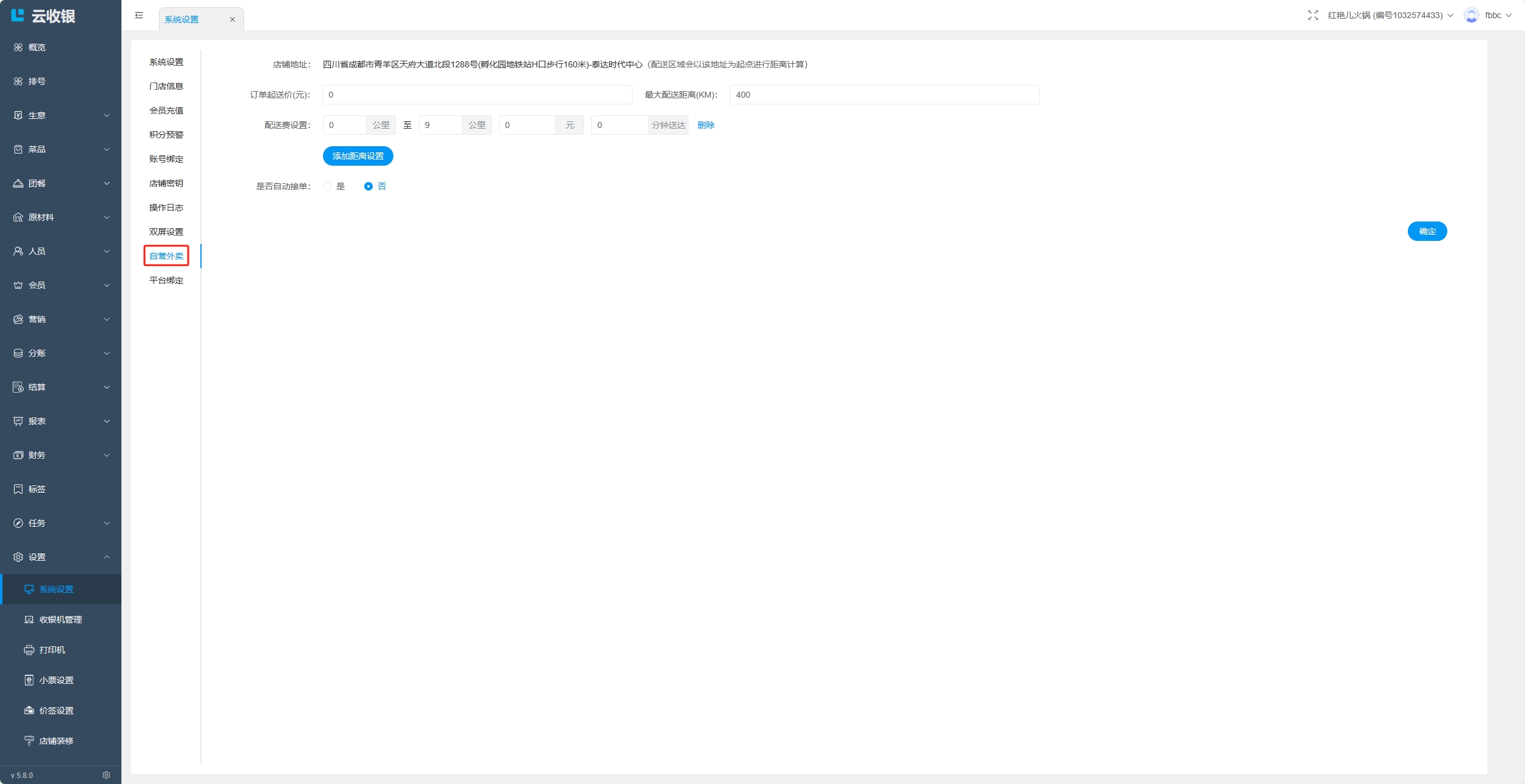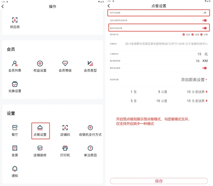 设置外卖配送规则;
