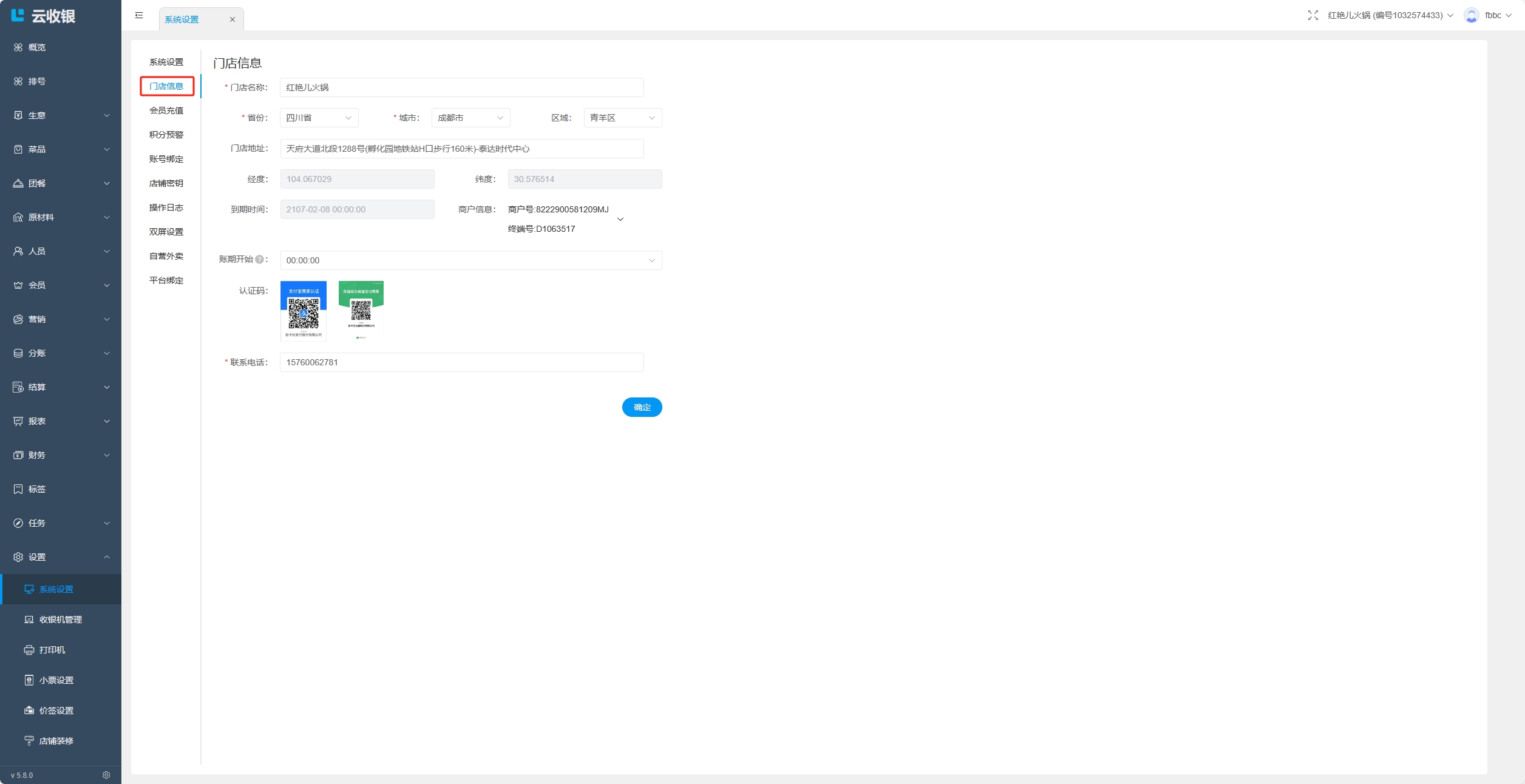 设置门店相关信息,如门店名称、门店地址、联系电话等;