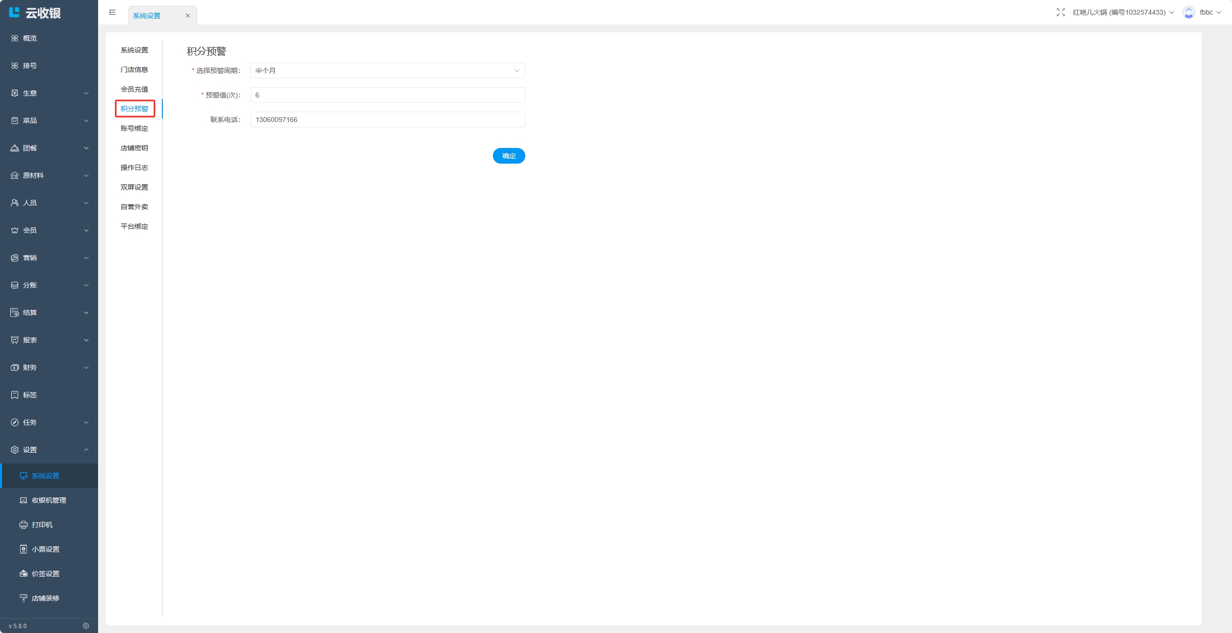 设置积分的预警周期和预警值;