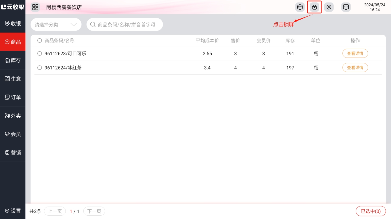 当收银员临时有事离开收银台时,为了保证账号收银安全,可以进行锁屏操作,锁屏后,需要输入当前账号的登录密码解锁;