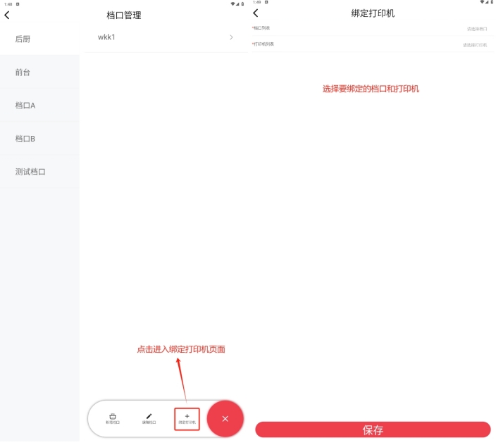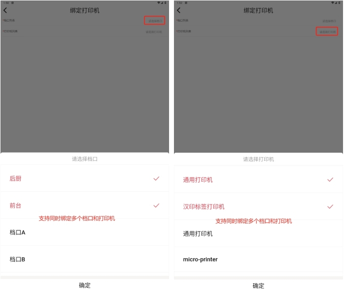 在档口下绑定打印设备,支持同时为多个档口绑定多个设备;