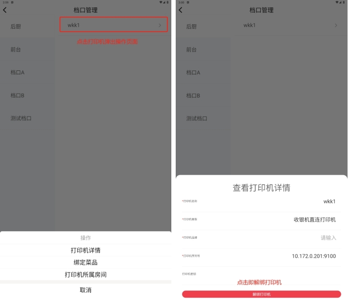 - 打印机详情:可以操作解绑